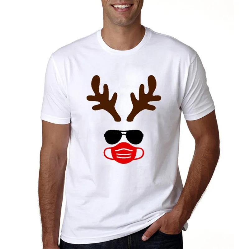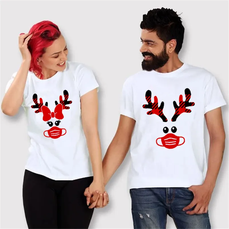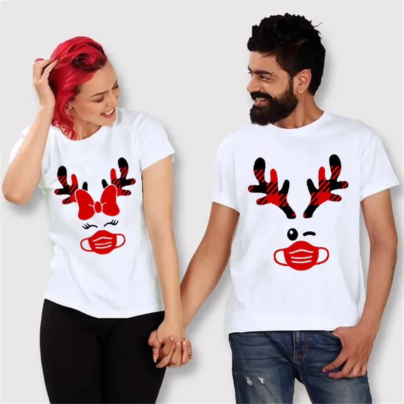 Maycaur футболка с оленем и маской для пар, модная Рождественская одежда для пар, повседневные топы с круглым вырезом, рубашки для любителей любого сезона