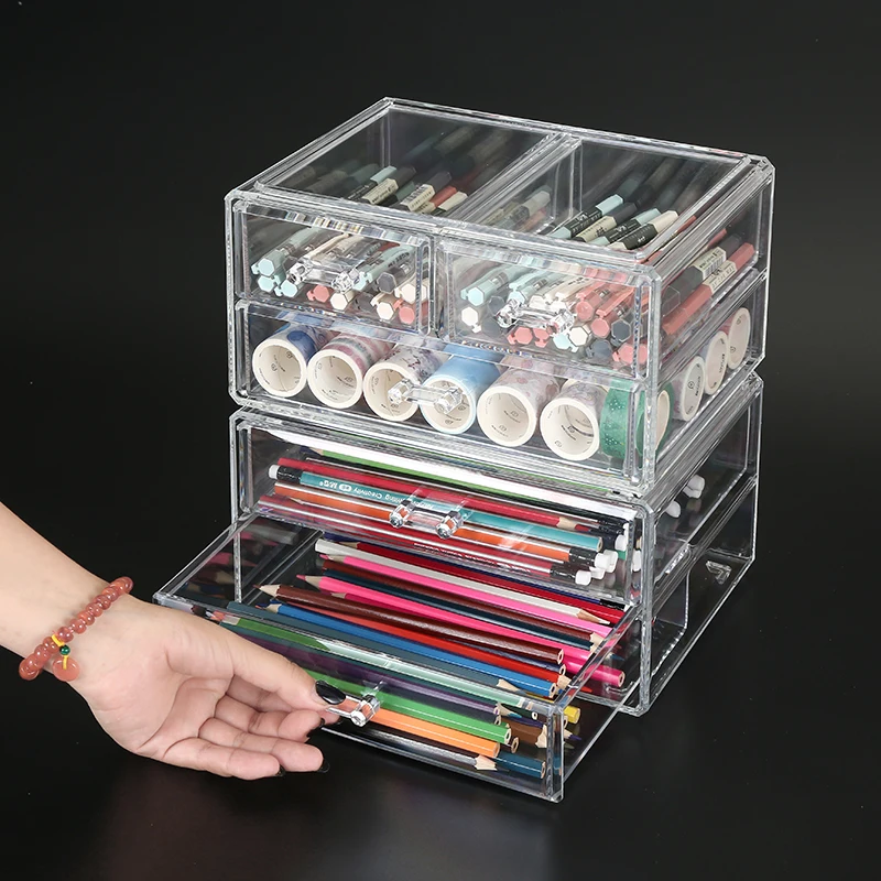 Прозрачный органайзер для хранения косметики, ящик Рабочий стол органайзер, ящики для хранения ювелирных изделий, канцелярских принадлежностей, косметический бокс для помады