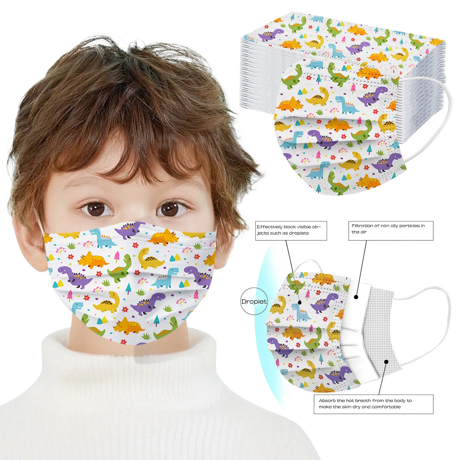 1020 Вт, 30 Вт, 100 предметов; Детская футболка с принтом масок одноразовая маска для лица, модные, с принтом динозавра, маска для полости рта промышленный 3Ply Петли Уха Маска #14