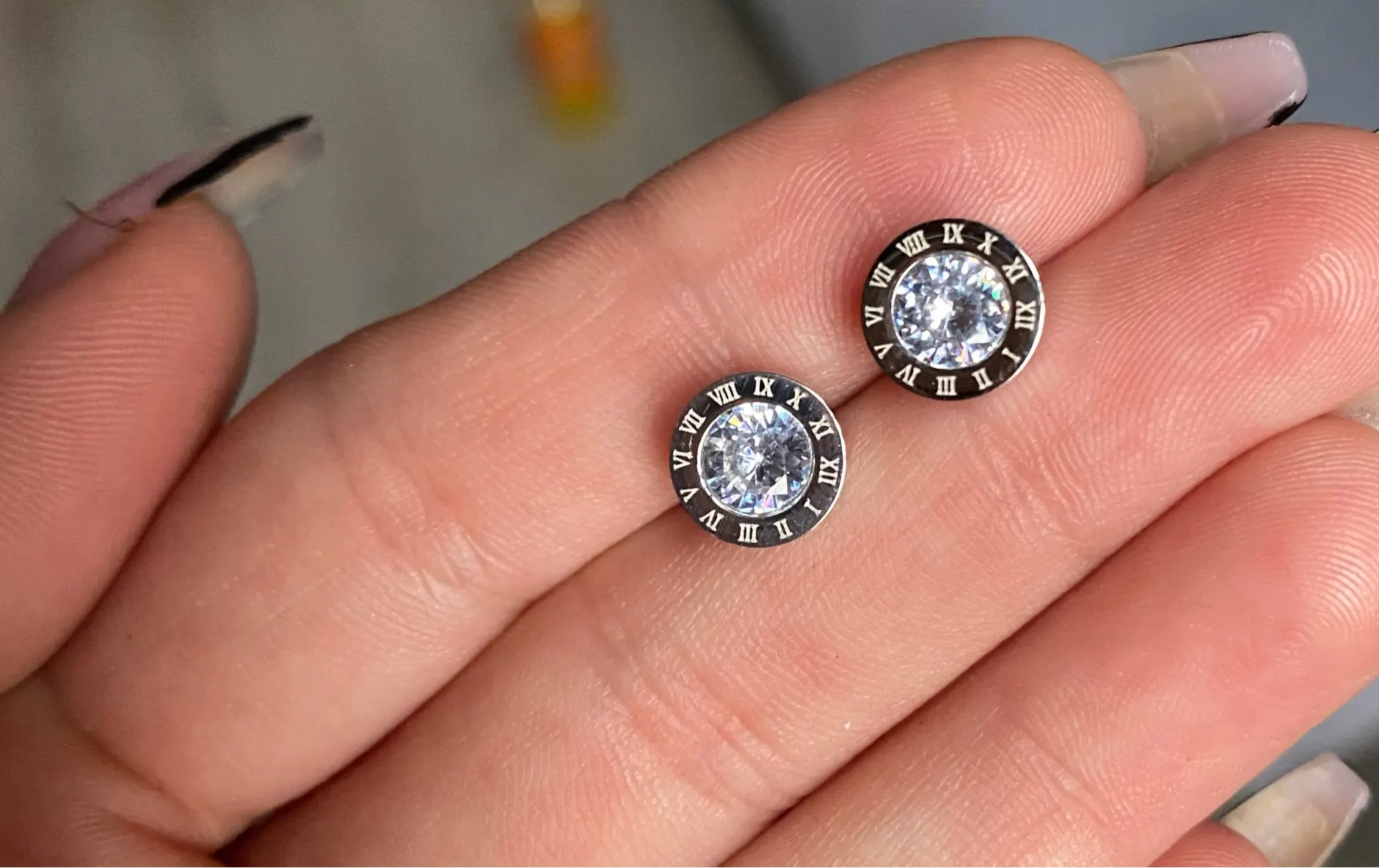 Модные круглые антиаллергенные серьги-гвоздики из титановой стали с римскими цифрами для женщин и мужчин, серьги из нержавеющей стали с кристаллами, ювелирные изделия