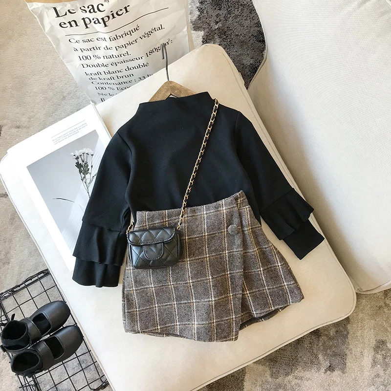Осенний комплект одежды olde для маленьких девочек, клетчатая юбка,...