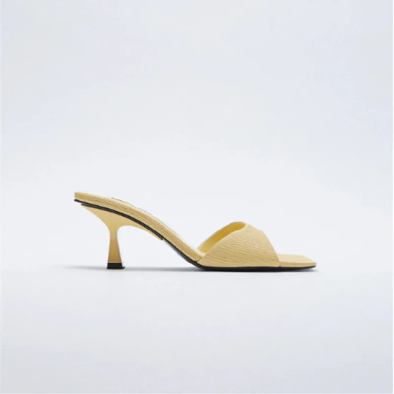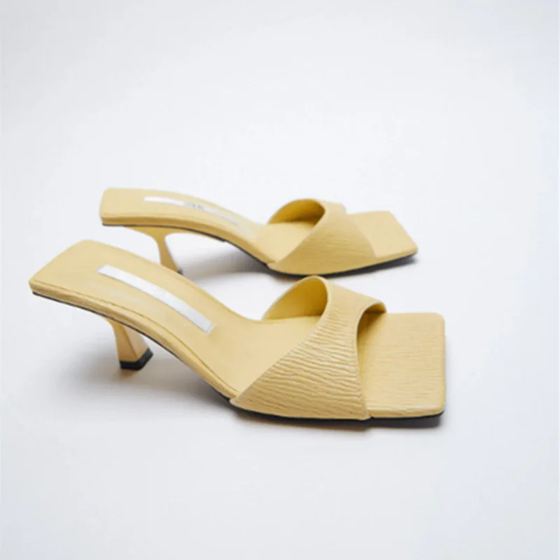 Женские босоножки и шлепанцы ZARZ, желтые туфли с квадратным носком...