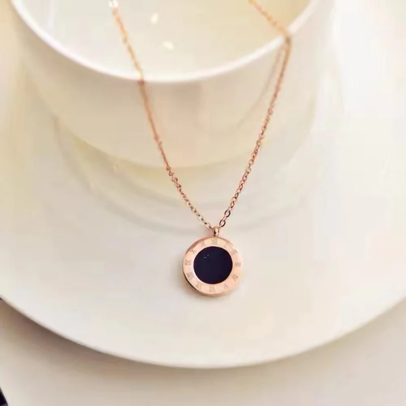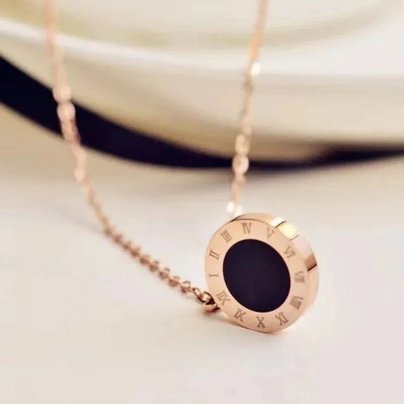 Ожерелье с римскими цифрами женское, модное черно-белое колье из фритиллярной титановой стали с круглой цепочкой до ключиц
