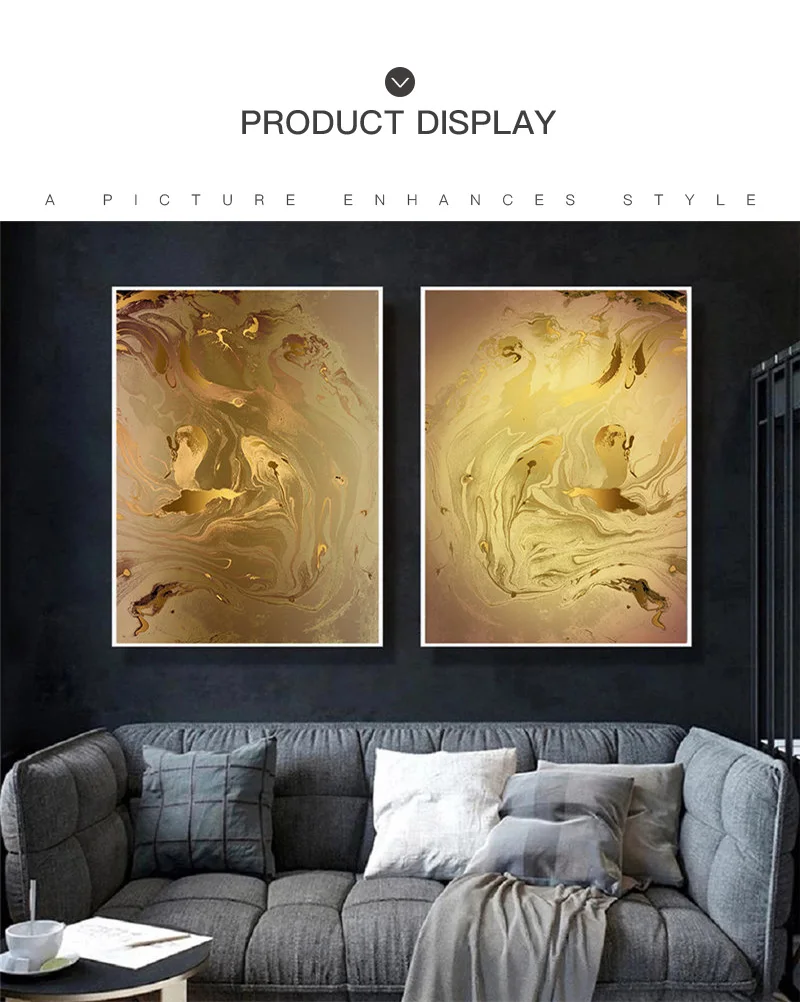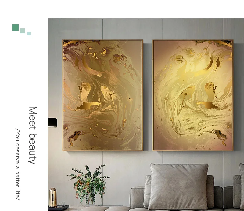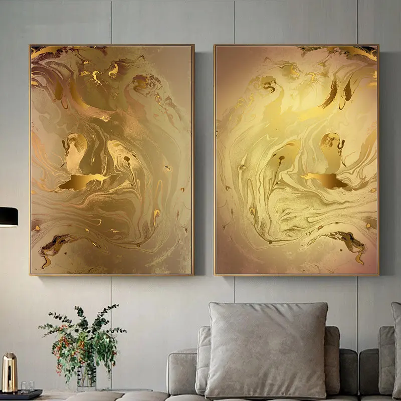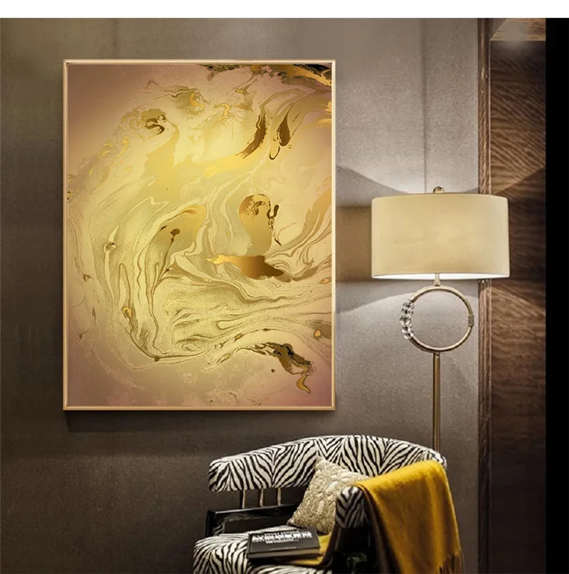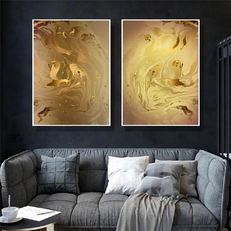 Золотое искусство, Мраморная абстрактная живопись, холст, Постер и ...