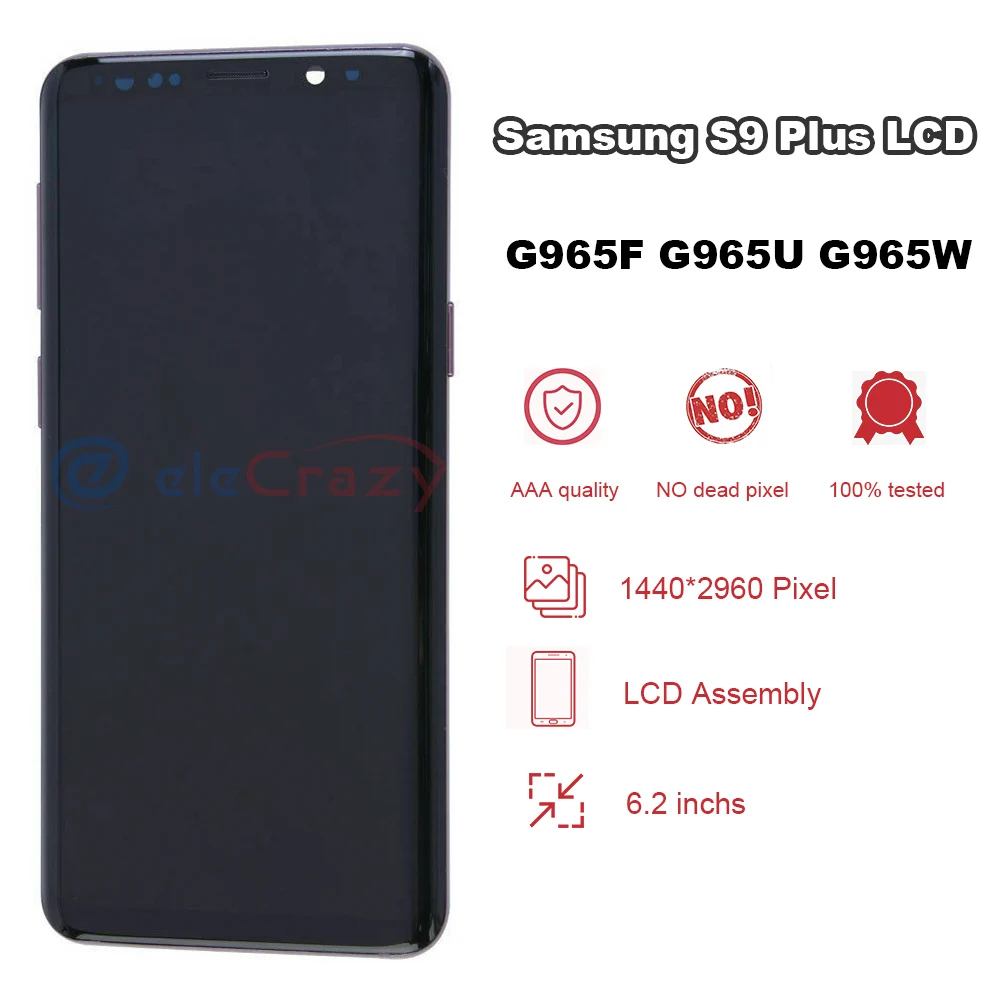 Оригинальный AMOLED-дисплей для Samsung Galaxy S9 Plus G965F, ЖК-дисплей с сенсорным дигитайзером и рамкой в сборе, замена, 100% Протестировано