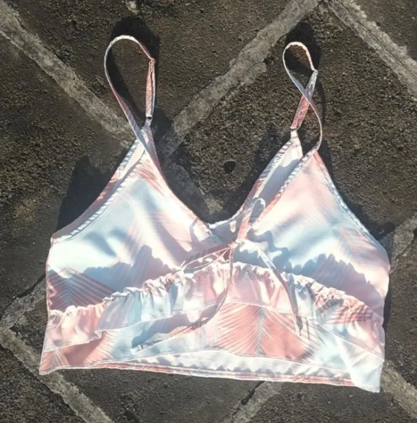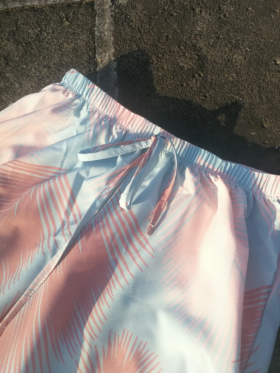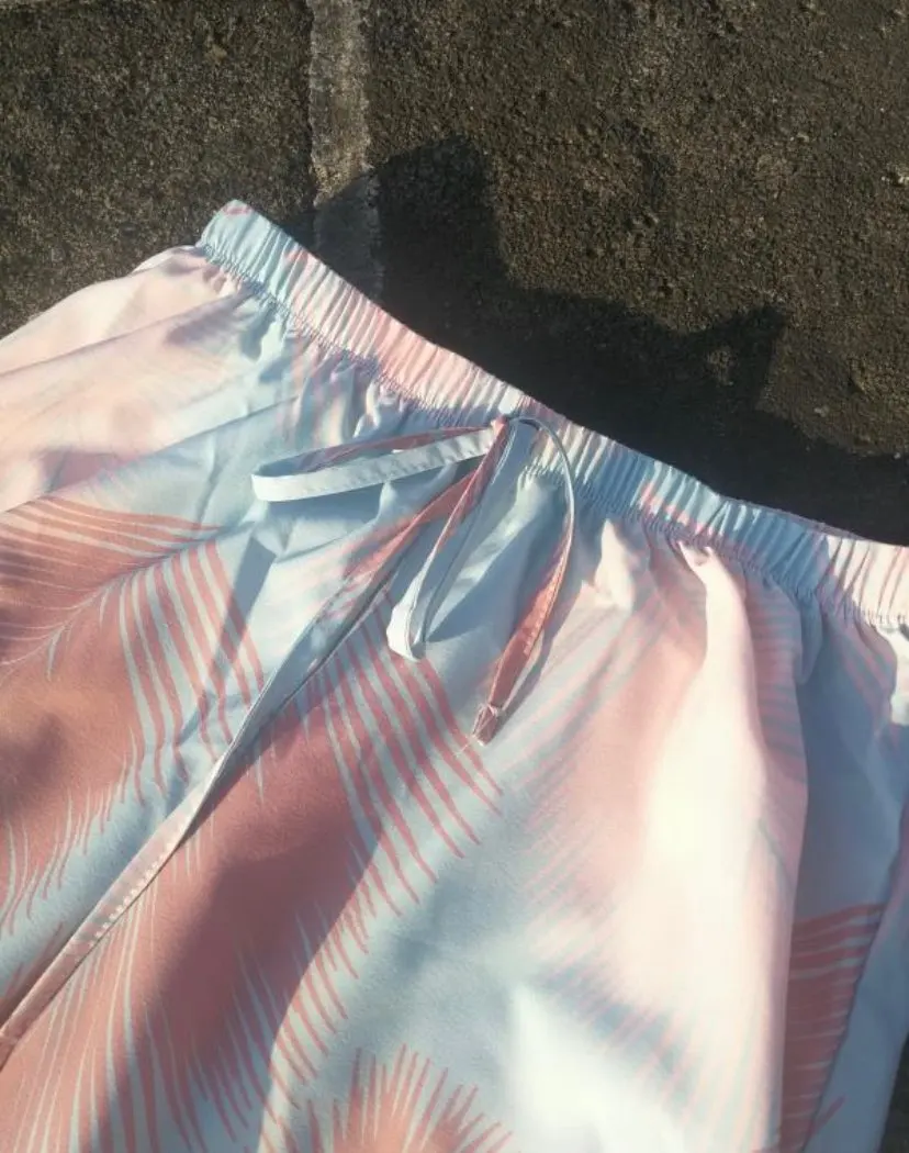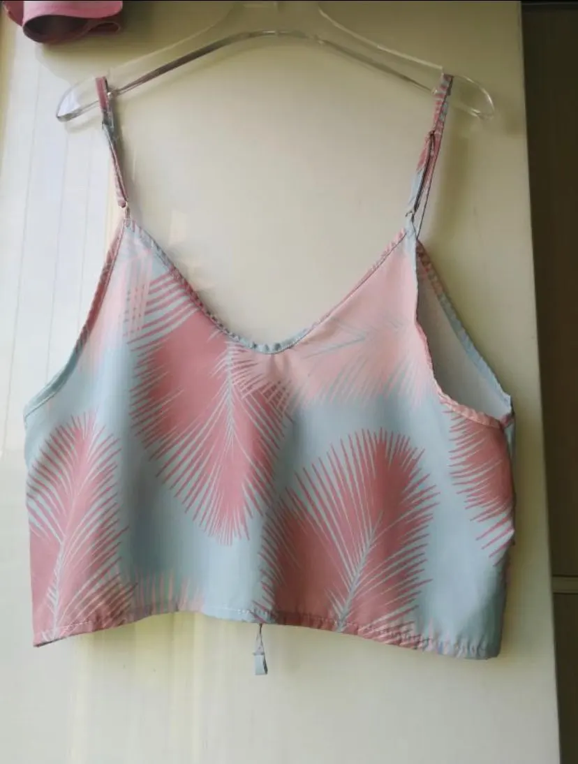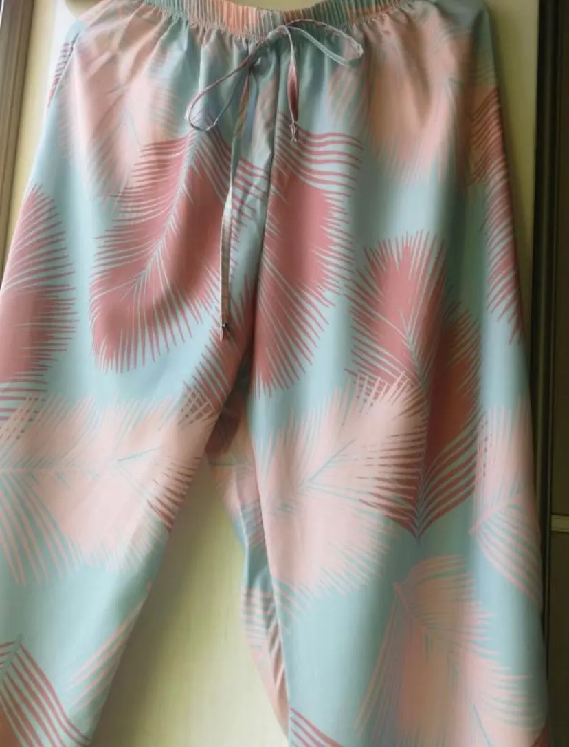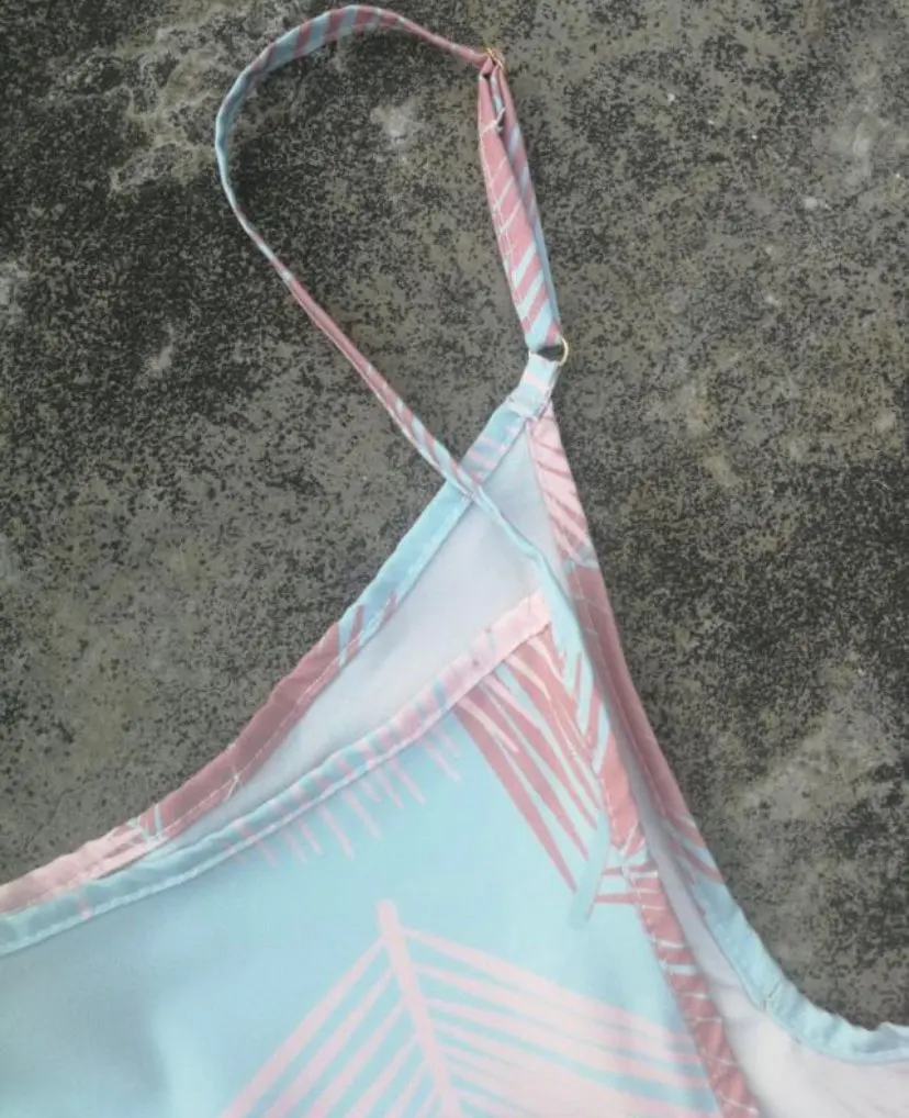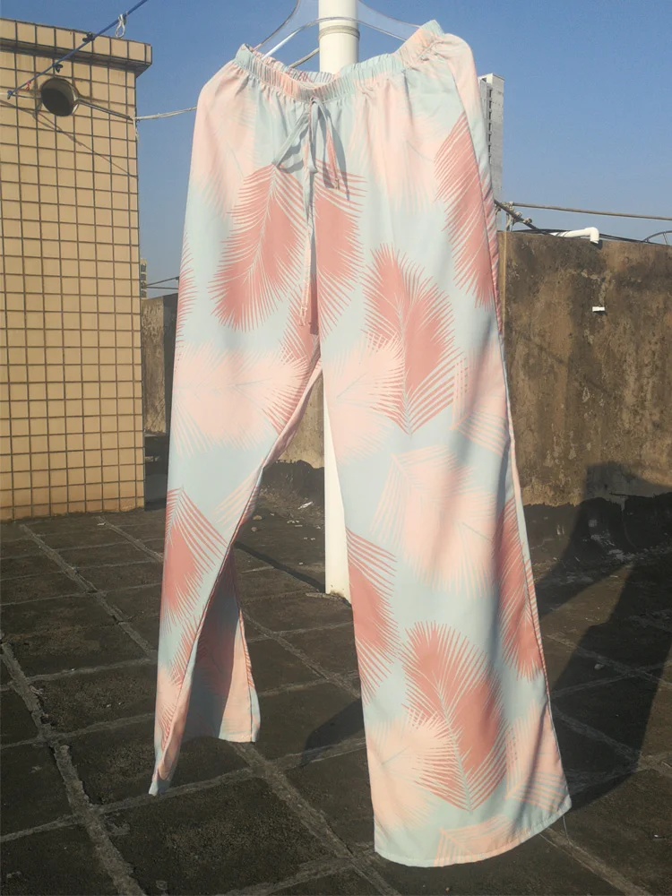 Пижамный комплект с тропическим принтом, Атласный топ на бретелях с оборками и штаны, одежда для сна с завязкой спереди, мягкий домашний костюм