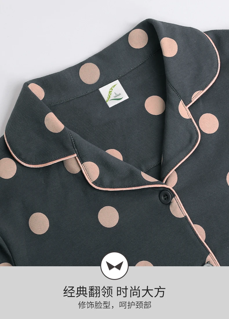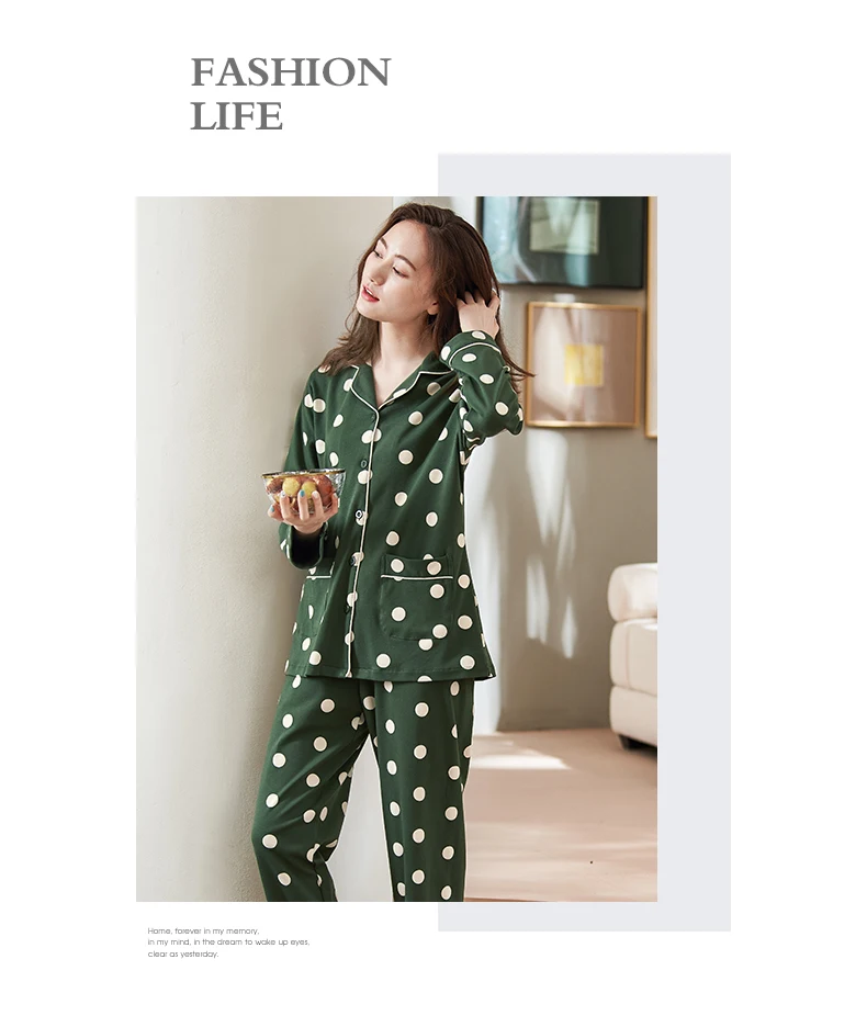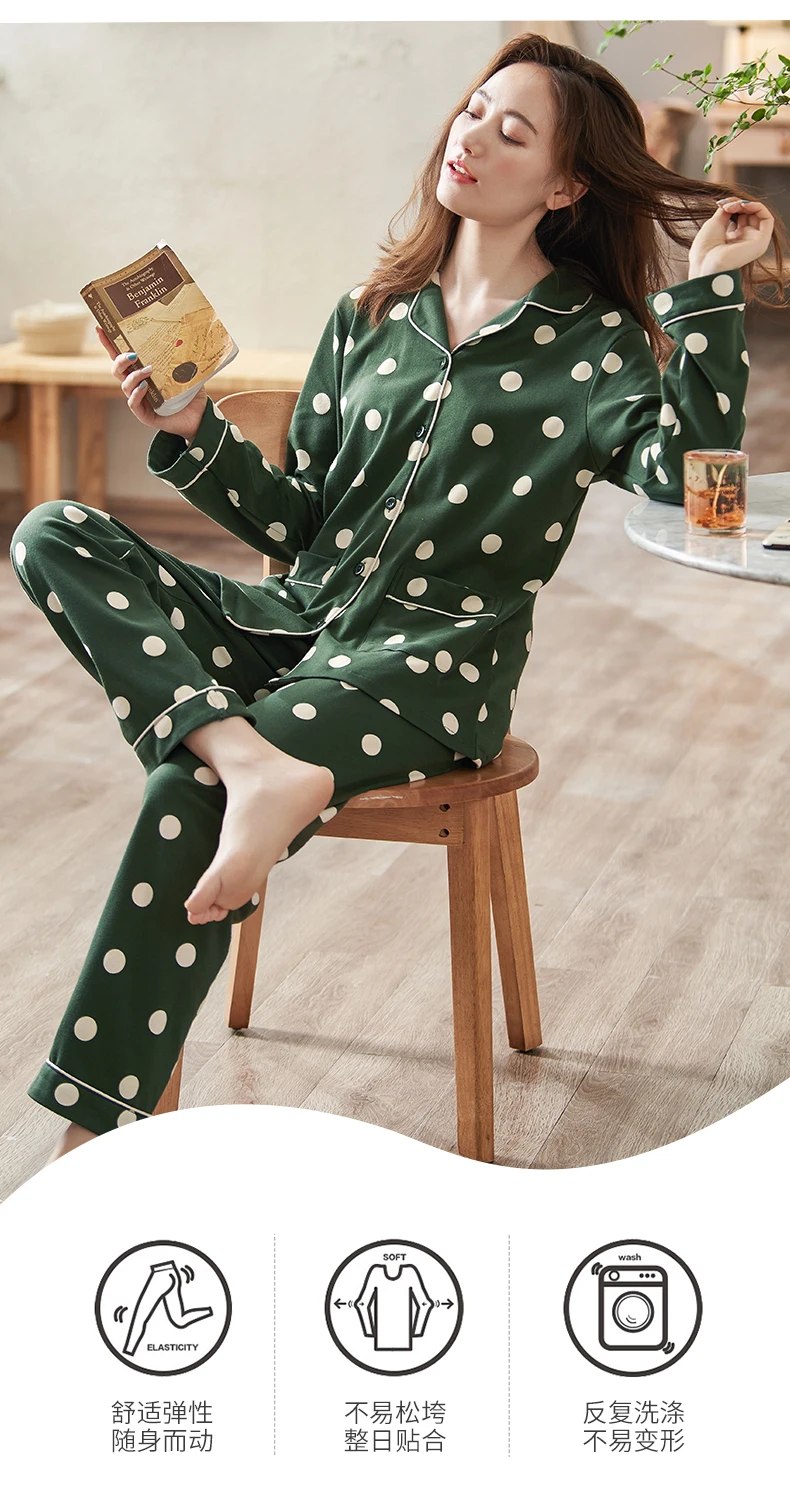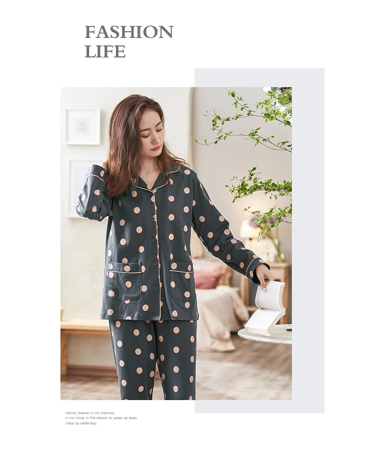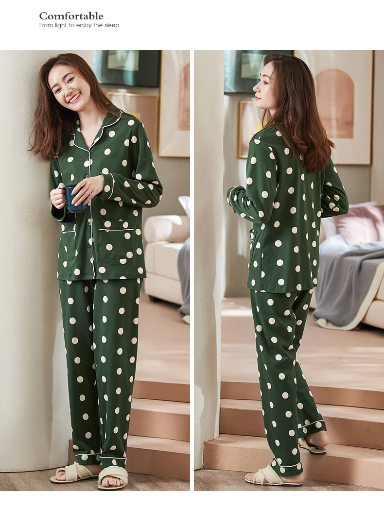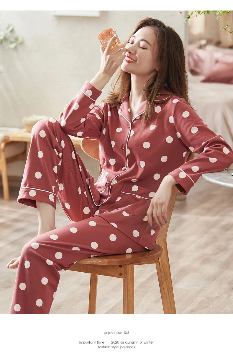 Женская обувь с узором в горошек, одежда для сна, костюм осеннее Хлопковое платье с длинными рукавами в стиле принцесс Пижама для ребенка, Повседневный Кардиган, домашняя одежда размера плюс M-3XL Пижама Mujer