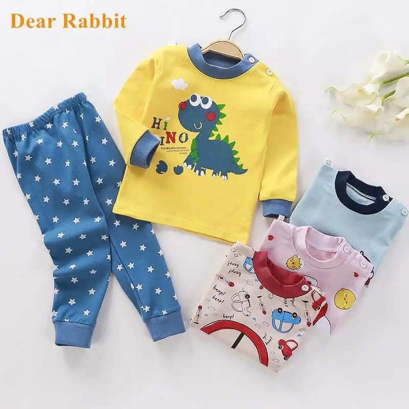 Комплект нижнего белья из 2 предметов, из От 6 месяцев до 8 лет хлопка, зимняя домашняя пижама для мальчиков и девочек