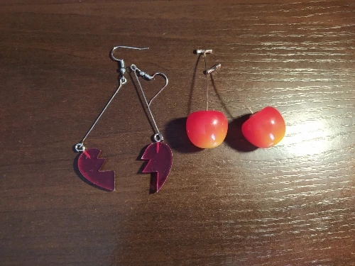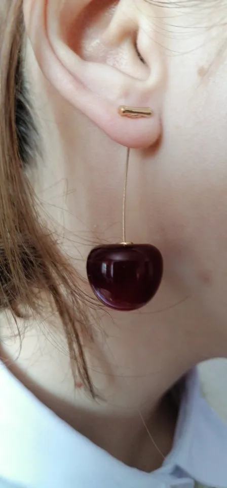 The first picture does not match the earrings I got. They look more like "real" cherries as in a variation of colors and not just one red color.