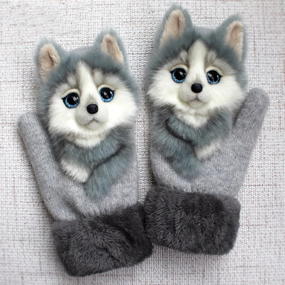 2021 перчатки с животным узором для женщин и мужчин, модные осенне-зимние теплые плюшевые вязаные перчатки унисекс для улицы Gants De Femmes