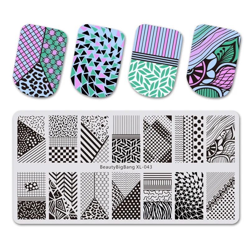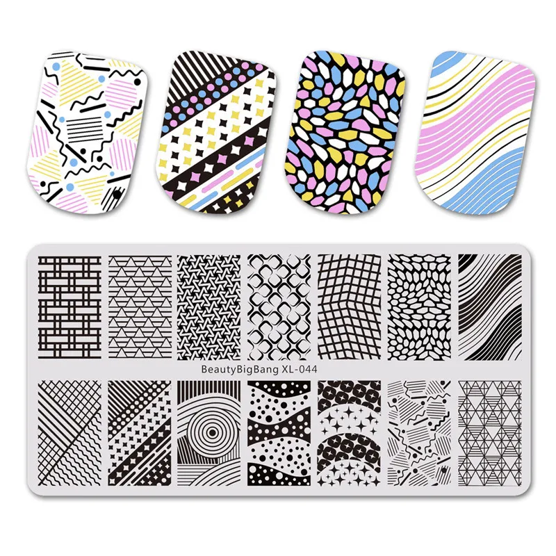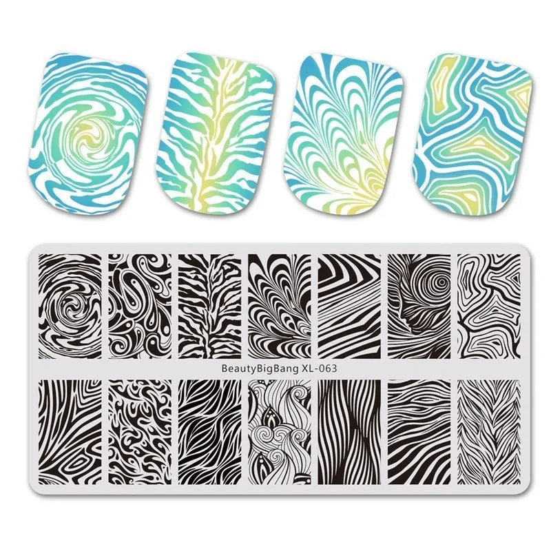 Beauty Big Bang штампованные пластины 6*12 см геометрическая решетка тема ногтей шаблон штамповочных плит водная пульсация изображения трафареты для дизайна ногтей