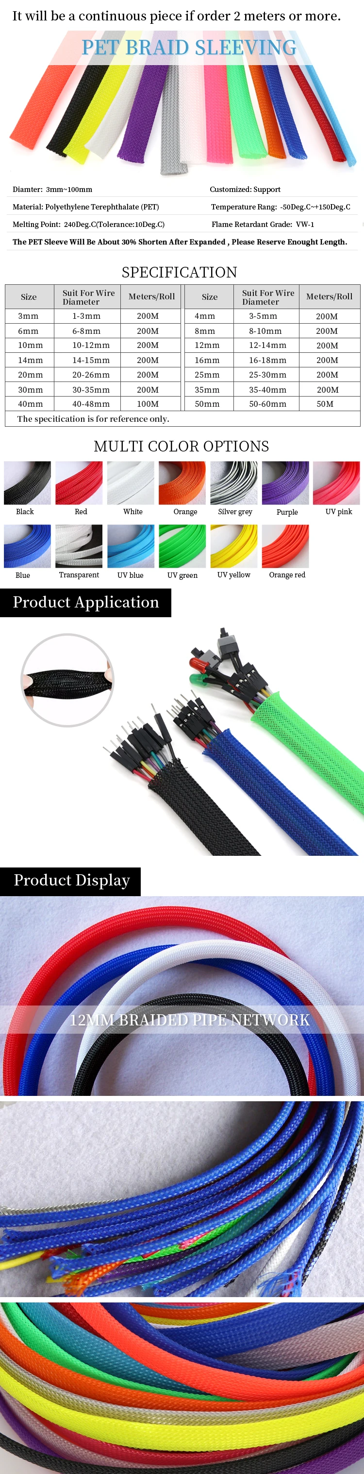 Плетеная проволочная оболочка из ПЭТ высокой плотности, 2 м, 2, 4, 6, 8, 10, 12, 14, 16, 18, 20, 25, 30 мм