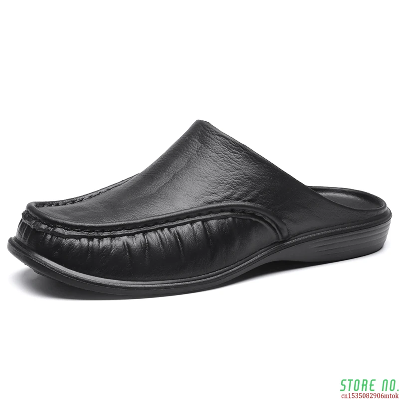 Тапочки из натуральной коровьей кожи для мужчин и женщин, нескользя...