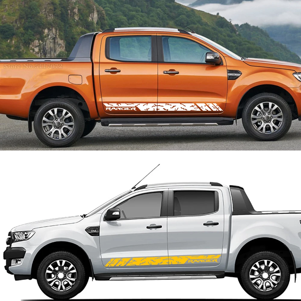 Виниловые наклейки с принтом на боковую юбку двери автомобиля, длинные большие наклейки для Ford Ranger, декор кузова, спортивные гоночные аксессуары, 2 шт.