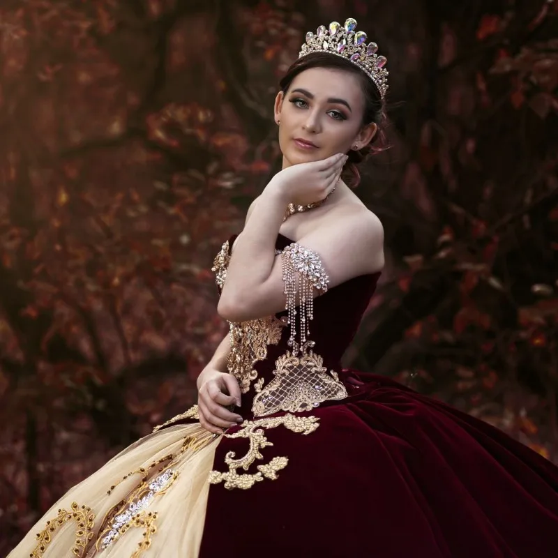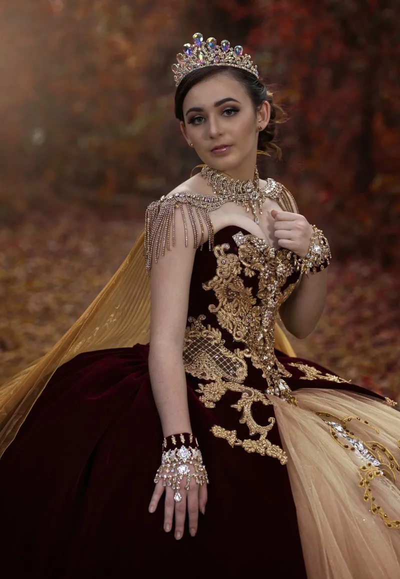 Платья партии Мексиканская темно-красная бархатная Бальные платья аппликация бисером аппликация сладкий 16 платье vestidos de XV 15,
