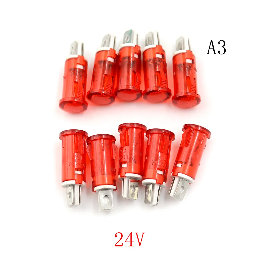 Неоновый Индикатор 220 В, 110 В, 12 В, 24 В, 10 шт., MDX-11A мм