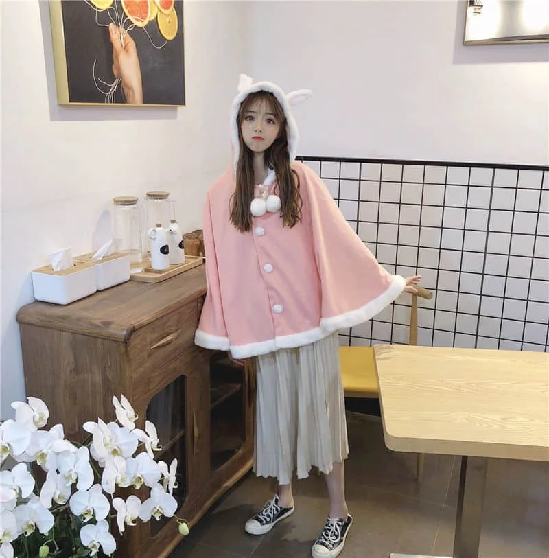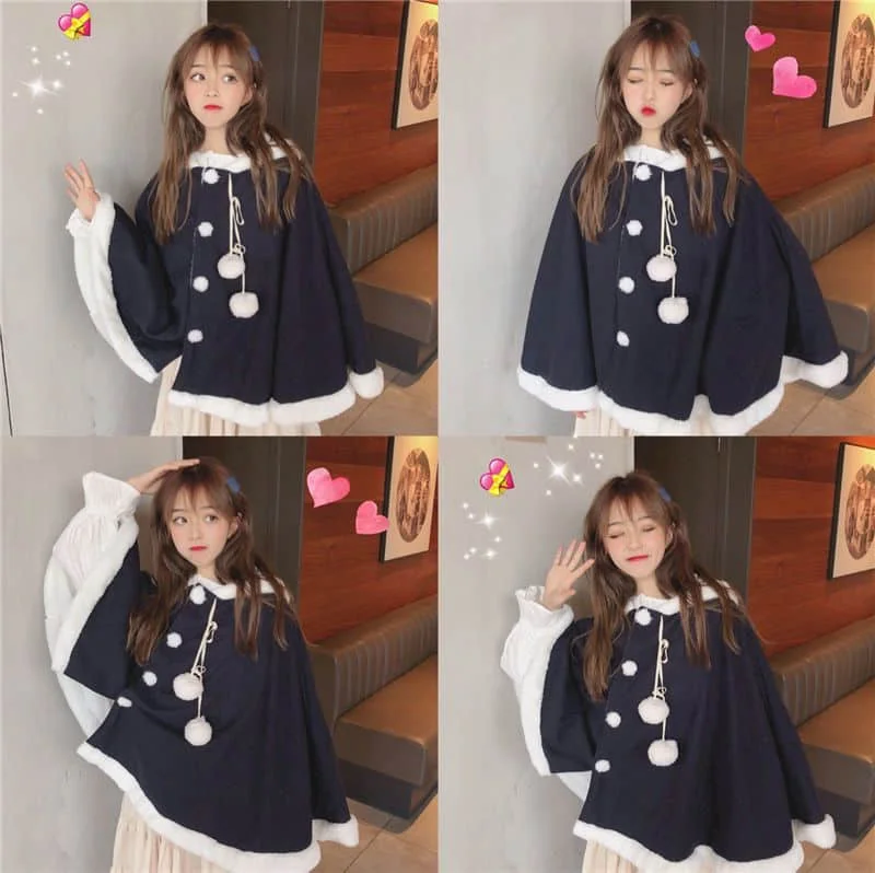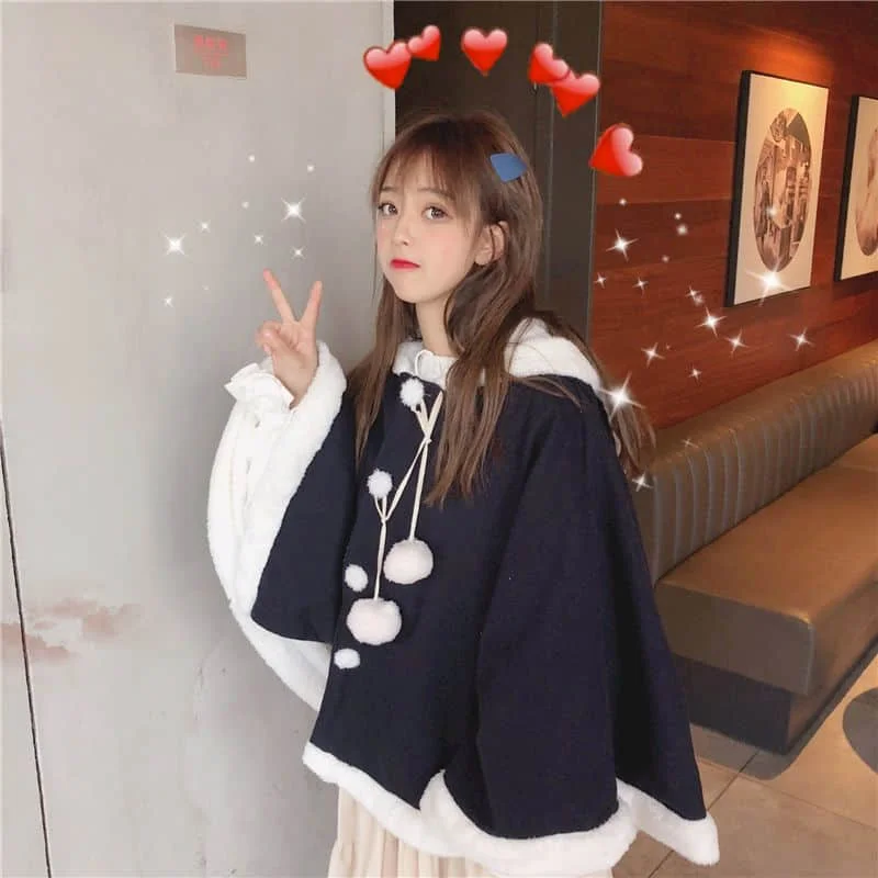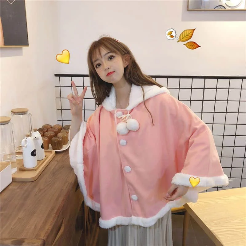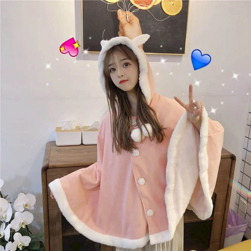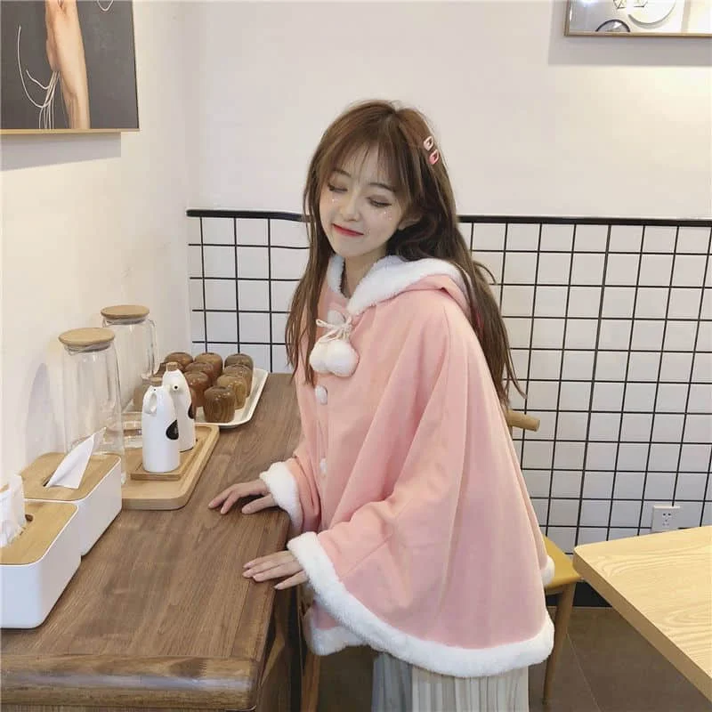 Женская накидка с капюшоном, осенне-зимний Кардиган с капюшоном, милая накидка в японском стиле плюс, Студенческая куртка с кроличьими ушками, плюшевые шарики на шнуровке, свободный, удобный