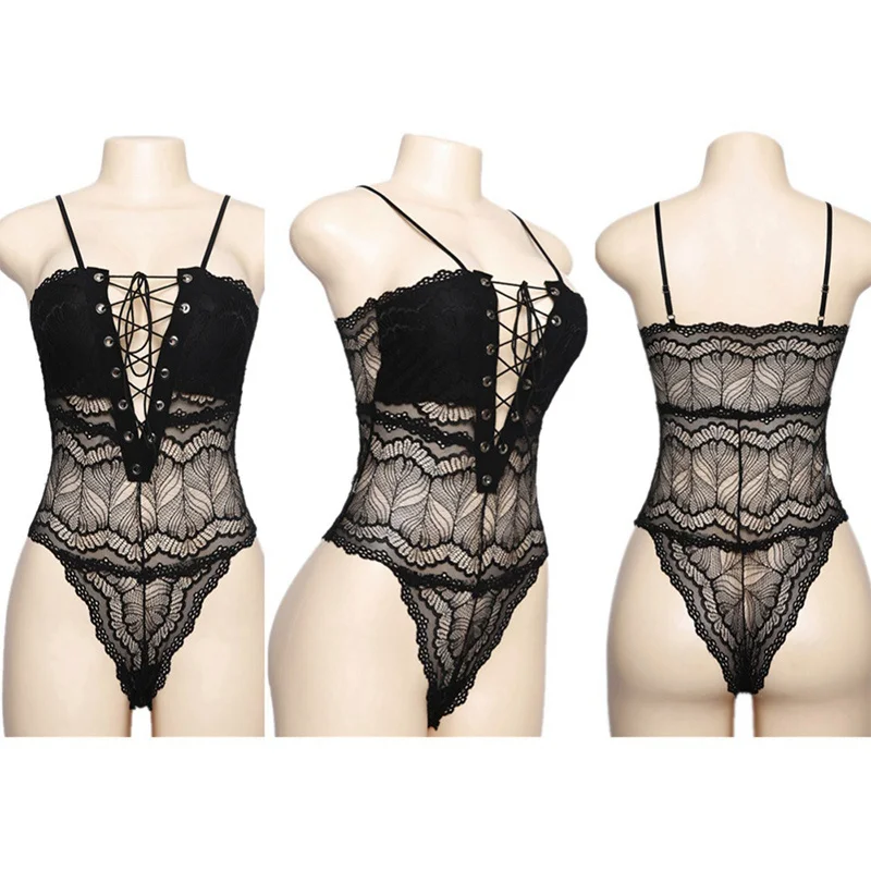 Комбинезон женский, кружевной, с глубоким V-образным вырезом