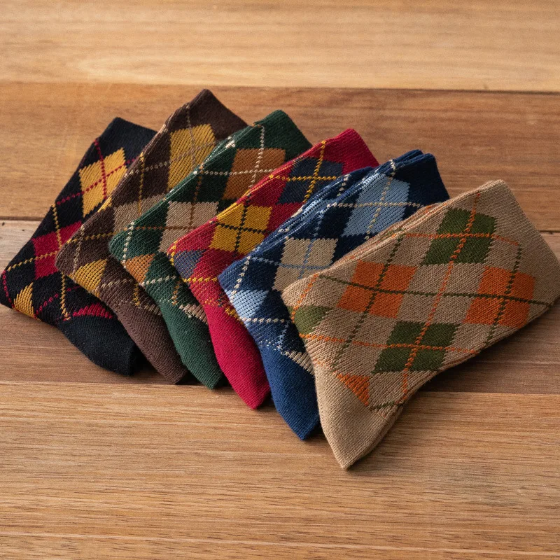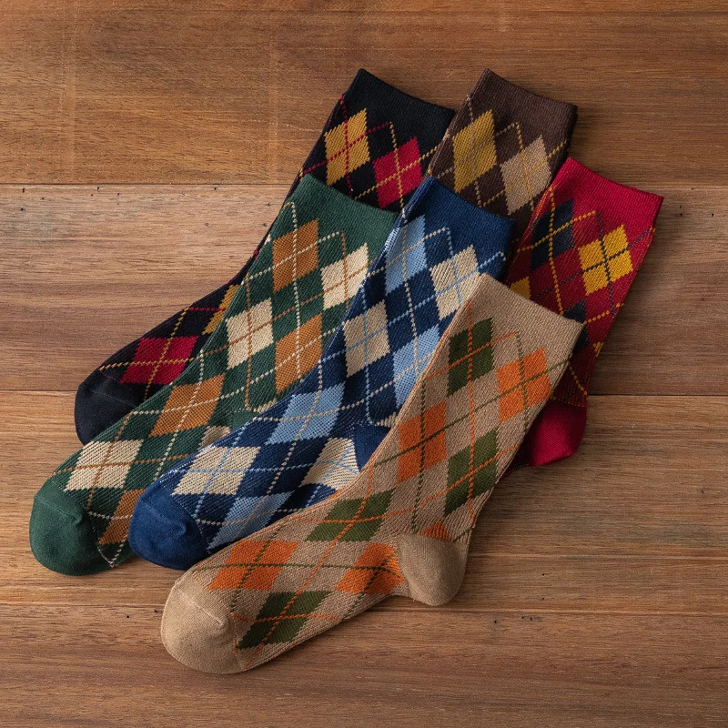 Модные женские и мужские носки изящный абзац Алмазный Узор Аргайл трехмерные трубы геометрические хлопковые носки