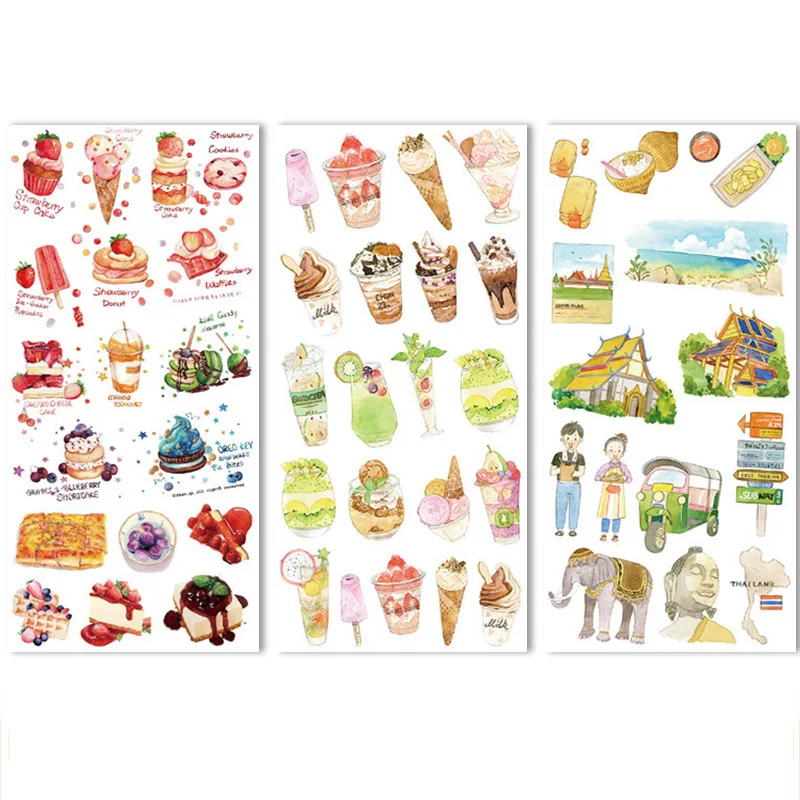 3 листа, Канцтовары из Бангкока с изображением вкусной еды, наклейки для детей, милые декоративные наклейки, набор для скрапбукинга, дневника, Стик, этикетка