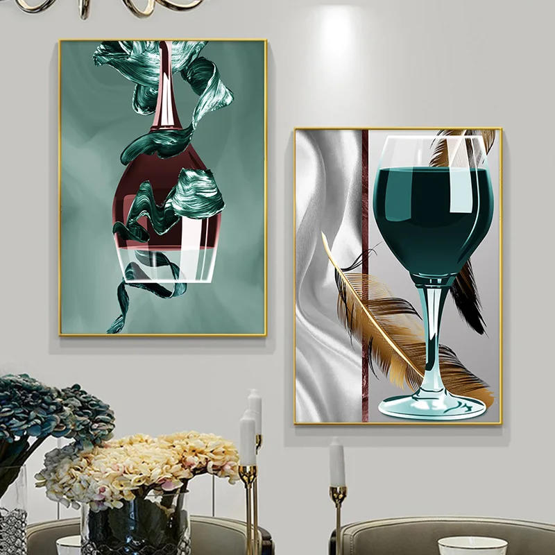 Абстрактный скандинавский постер, перо, бокал для вина, холст, картина, настенные художественные фотографии для гостиной, современные декоративные принты на стену, кухня, столовая, Декор