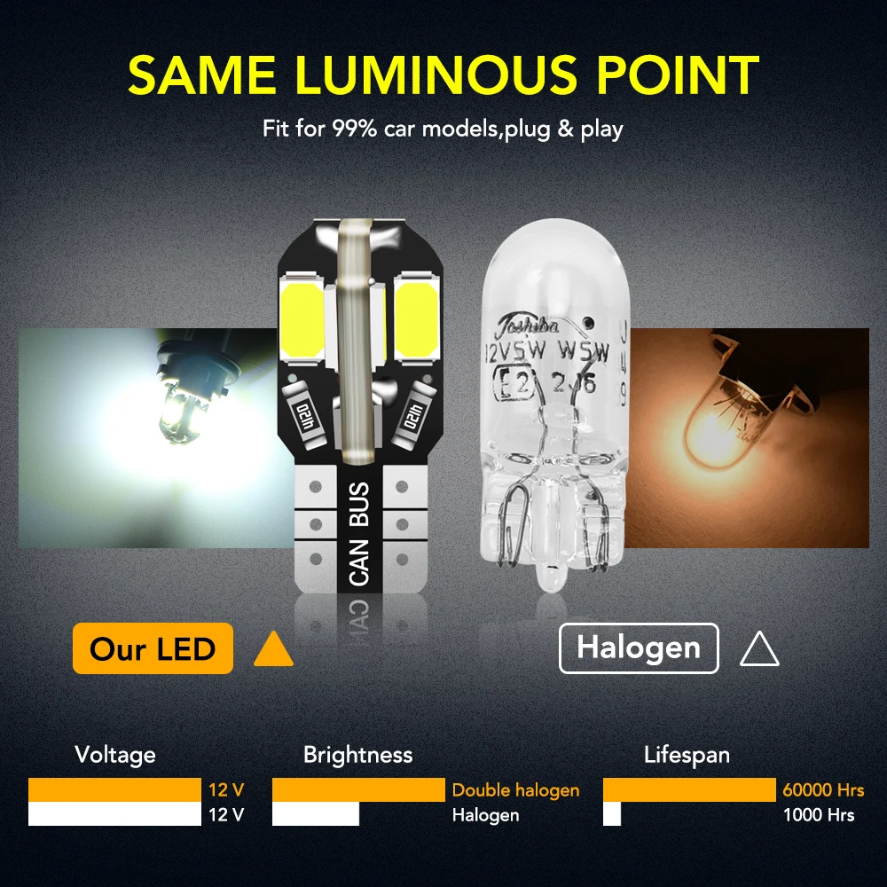 10 шт. T10 Led лампочка для салона автомобиля Canbus без Ошибок T10...