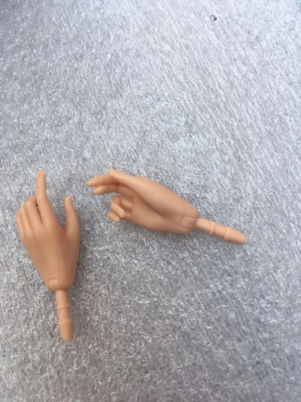 Кисти рук выглядят красиво, но издалека. Вблизи есть подтеки, облой. В светлых видна впаяная пыль. По скинтону подошли барби, хоть и неидеально. Штырек придется доработать. Минус звезда за упаковку. Было просто брошено в пакет кучкой, никаких отдельных пакетиков и защиты. Хоть и разочарована, все равно еще куплю, но только со скидкой. 300 с лихом рублей эти кисти не стОят.