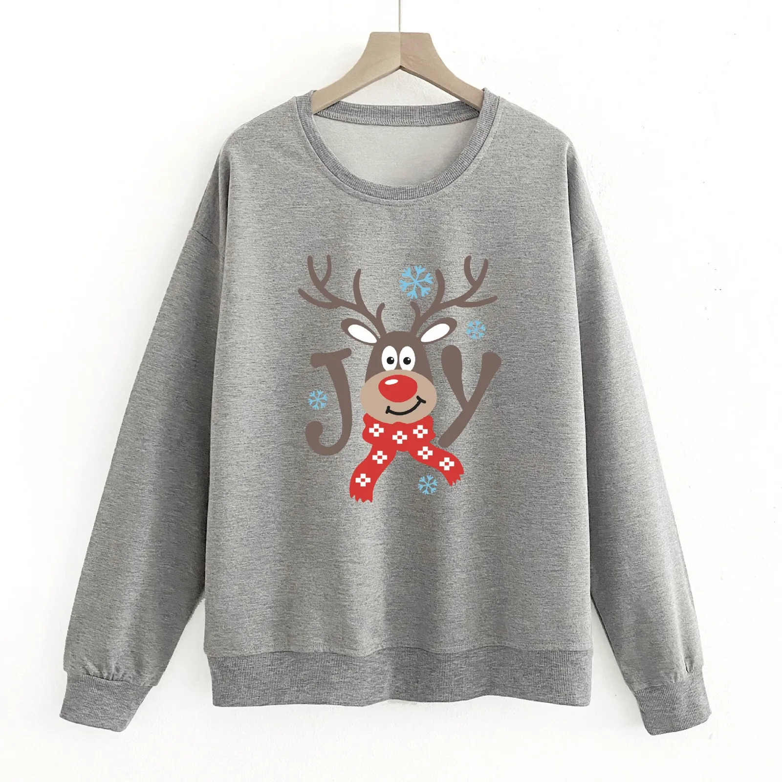 Модные женские повседневные рождественские свободные топы с длинными рукавами и круглым вырезом