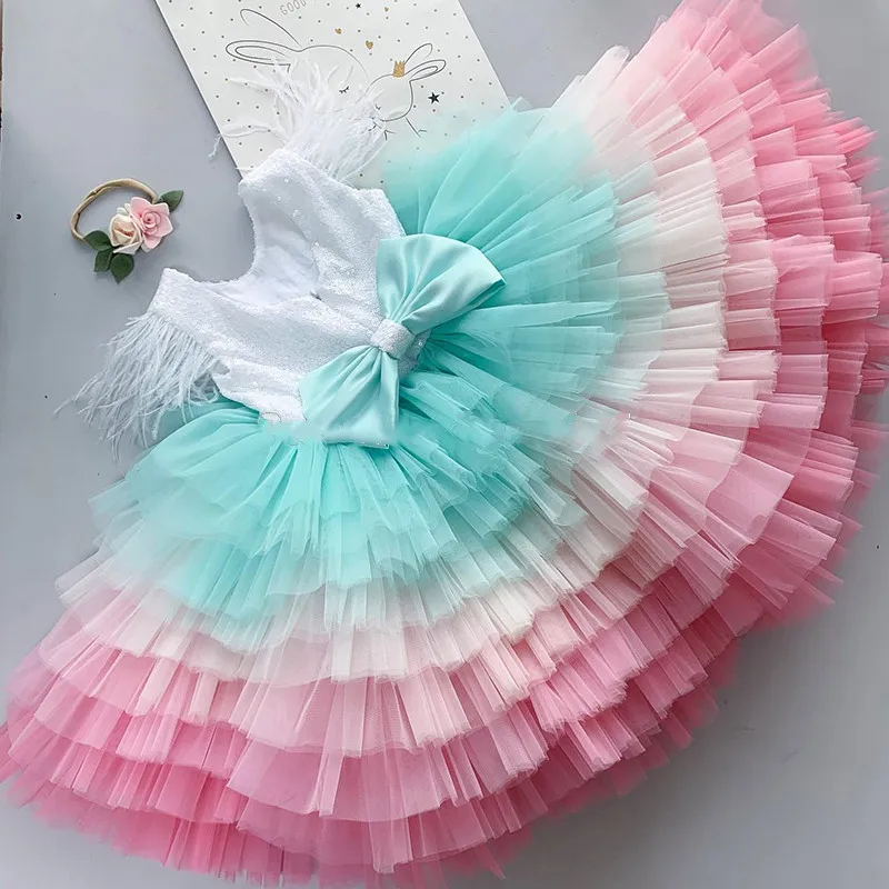 Красочные пышные платья для маленьких девочек на первый день рожден...