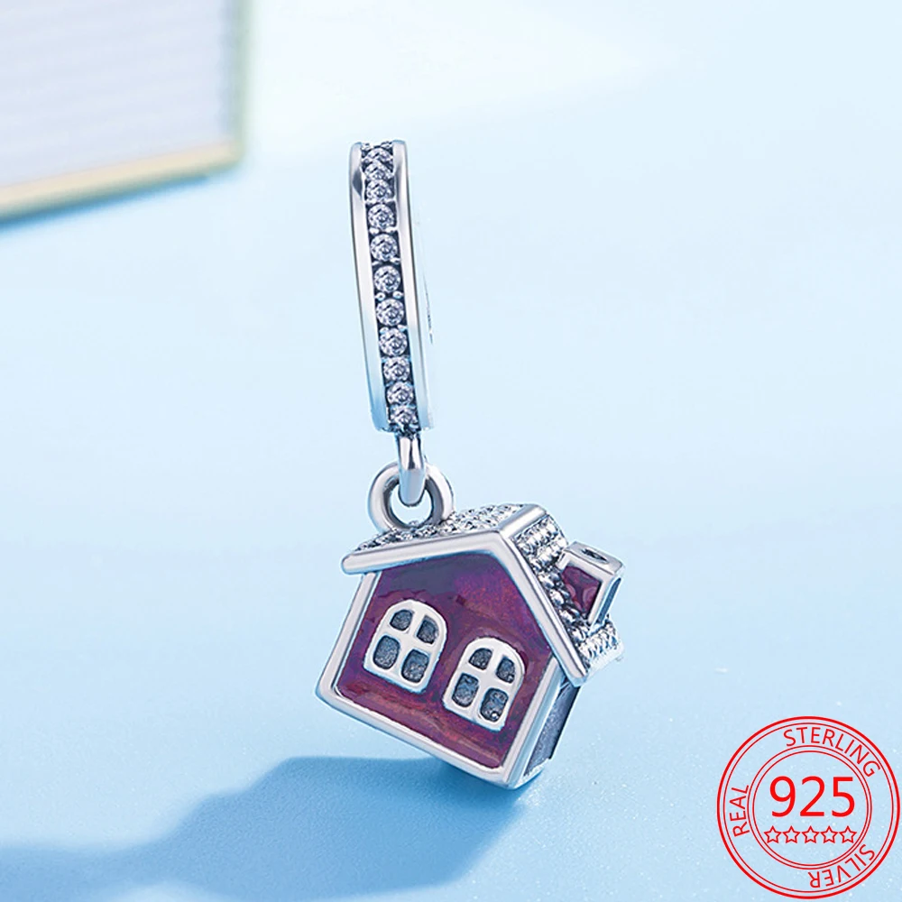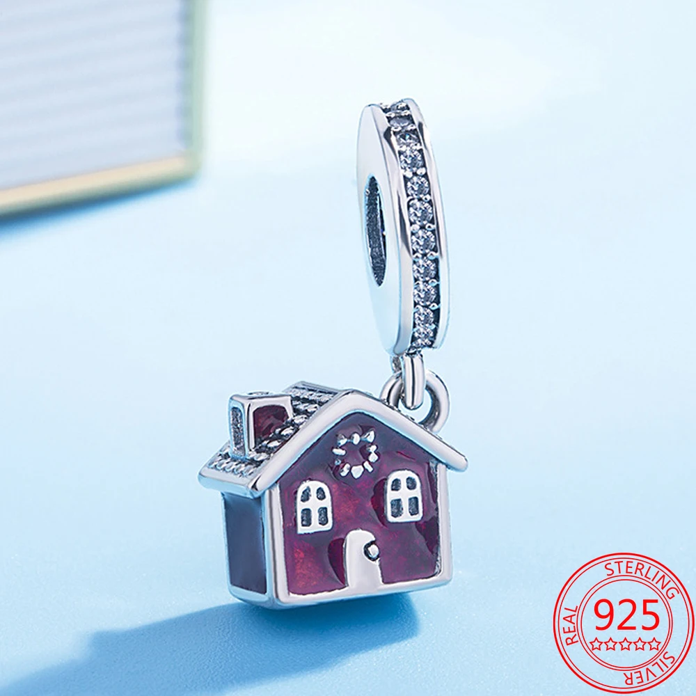 Ручной работы 925 стерлингового серебра вина Броши с красной эмалью в виде деревянного дома, очаровательный, подрходит к оригиналу бренд DIY браслет ювелирные изделия, кулон ювелирные изделия