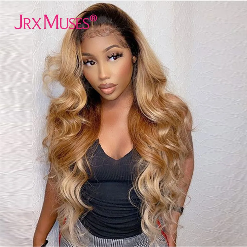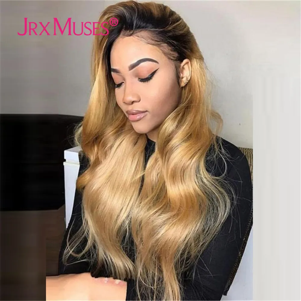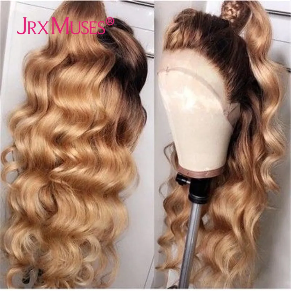 13x4 Выделите Синтетические волосы на кружеве человеческие волосы парик естественная волна 13x1 T часть длинные 1B 27 Мёд блондинка с эффектом деграде (переход от темного к Цвет натуральные накладные волосы, волосы