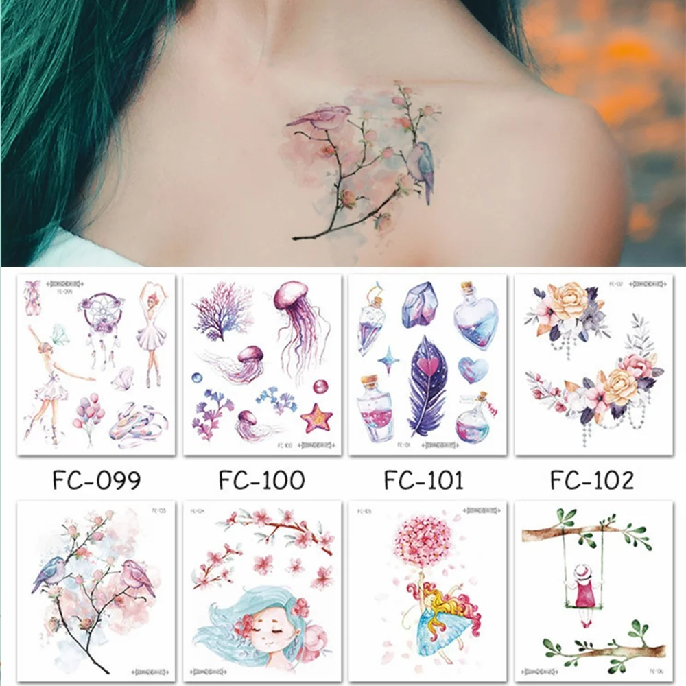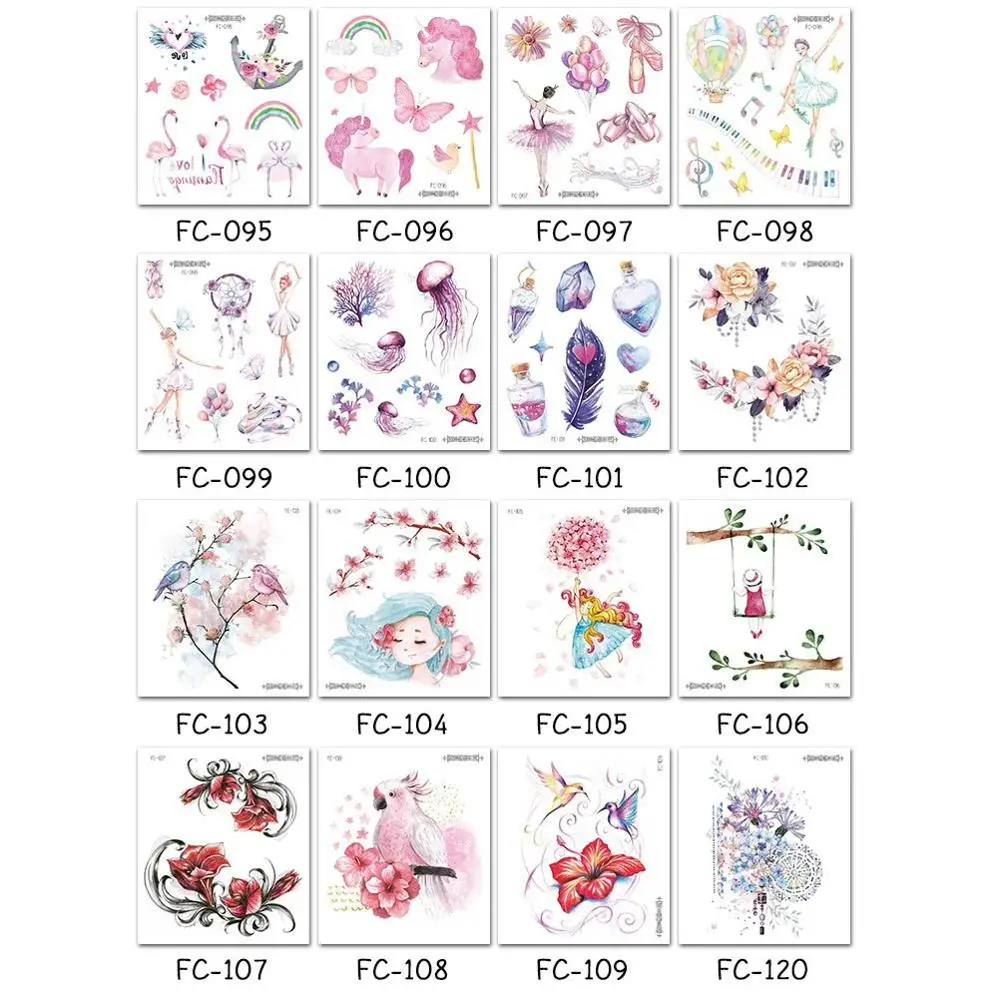 16 видов модных элементов временные татуировки наклейки боди-арт бабочка птица Единорог одноразовые татуировки Временные