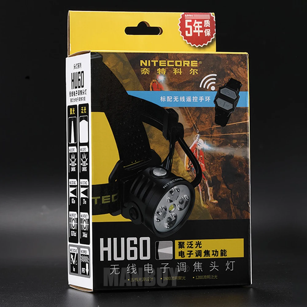 В дополнение к своим техническим инновациям, Nitecore HU60 Поставляется с совместимым беспроводным пультом дистанционного управления. Не беспокойтесь о ручном регулировании фары, не видя ни одной из кнопок, просто используйте наручный пульт и отрегулируйте уровни мощности для точечных и прожекторов и кнопки питания. Операции с кнопками на пульте управления на запястье аналогичны интерфейсу, представленному на фаре, поэтому нет путаницы, когда дело доходит до операции. Веб-дизайн от manbuy.