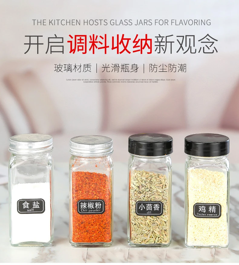 Бутылка для приправ, 120 г, квадратная стеклянная бутылка для приправ, для пищевых продуктов, приправа барбекю банок в бутылках, различные крышки для соли