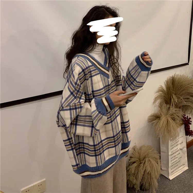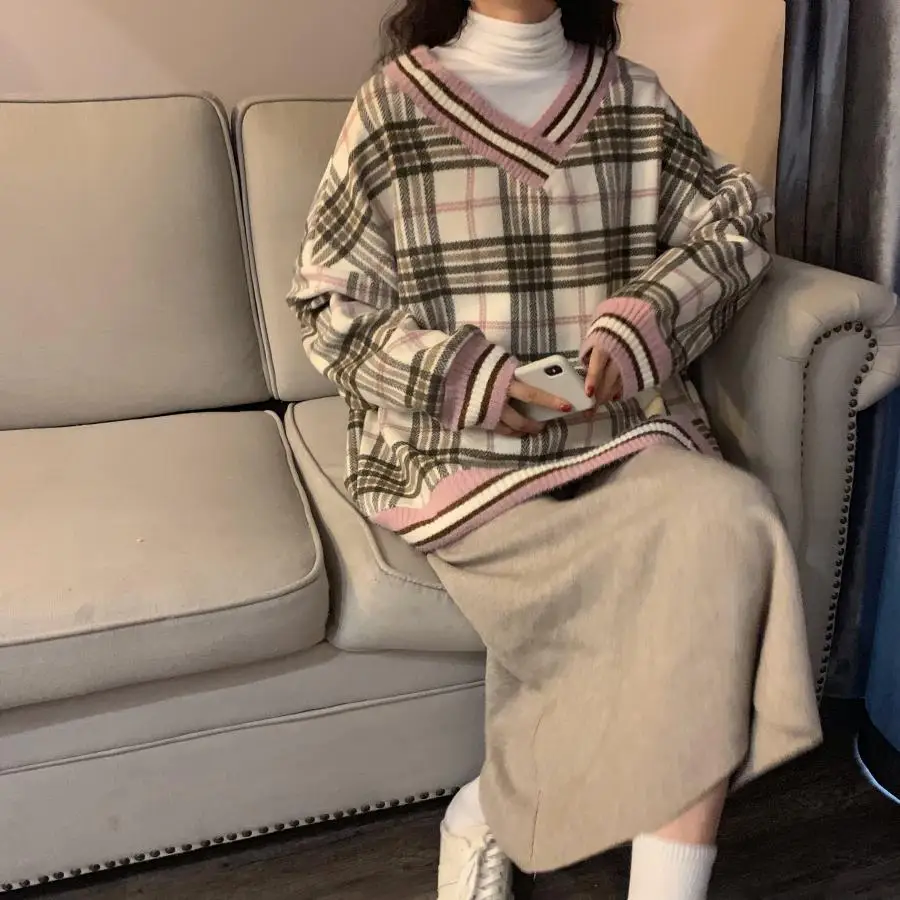 Супердалянь Толстовка свитер с принтом в клетку Повседневный пулове...