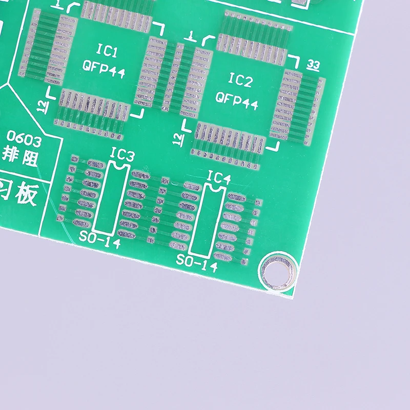 Толщина платы: 1,6 мм Соответствующие сварочные SMD компоненты имеют 9 категорий, в общей сложности 110 шт. и устанавливают соответствующие тестовые точки. ① Резистор --- 0805 (20 шт, все в серии, полное сопротивление R1)② Резистор --- 0603 (34 шт, все в серии, полное сопротивление R2)③ Резистор --- 0402 (10 шт, все в серии, полное сопротивление R3)④ Сетевой резистор --- 0603 (6 шт., все серии, с тестовыми точками)⑤ Конденсатор --- 0805 (20 шт, все в серии, общая емкость C1)Diode диод-3216 (10 шт, все в серии, точка тестирования Da)Transistor транзистор-SOT-23 (6 шт., с тестовыми точками)Integrated интегрированный чип-SO-14 (2 шт, с тестовыми точками)Integrated интегрированный чип-LQFP44 (2 шт, с тестовыми точками) Посылка включает в себя: 1 набор плат PCB для практики