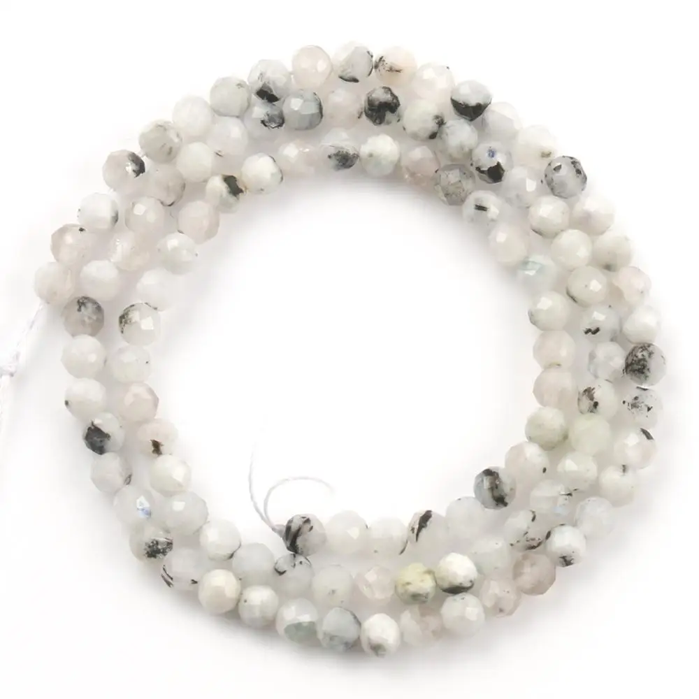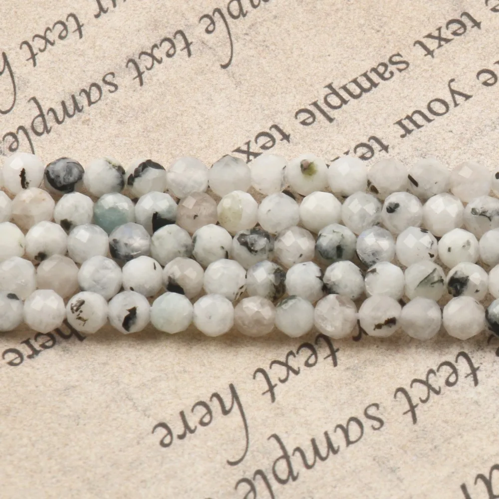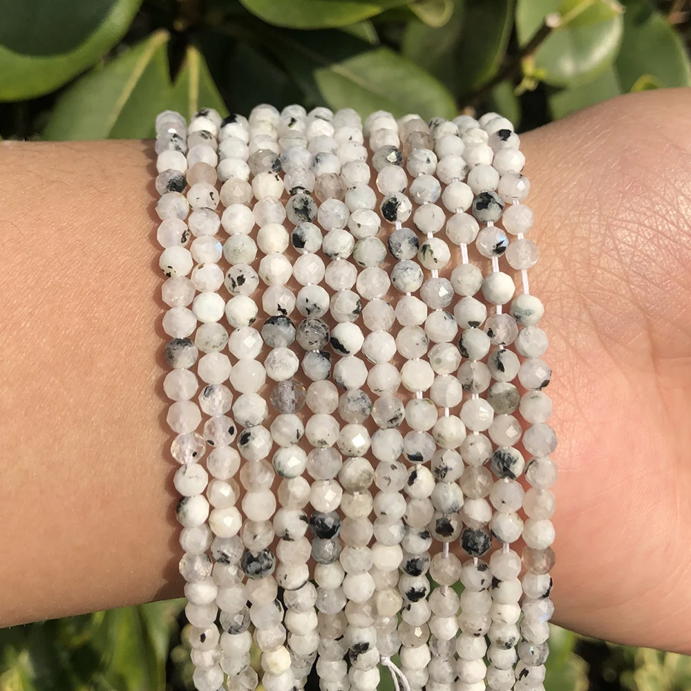 Натуральный черным пятнышком; Бусинка из лунного камня граненые синий камень круглый свободные бусины для самостоятельного изготовления украшений для изготовления украшений вручную браслет 15 дюймов 234 мм