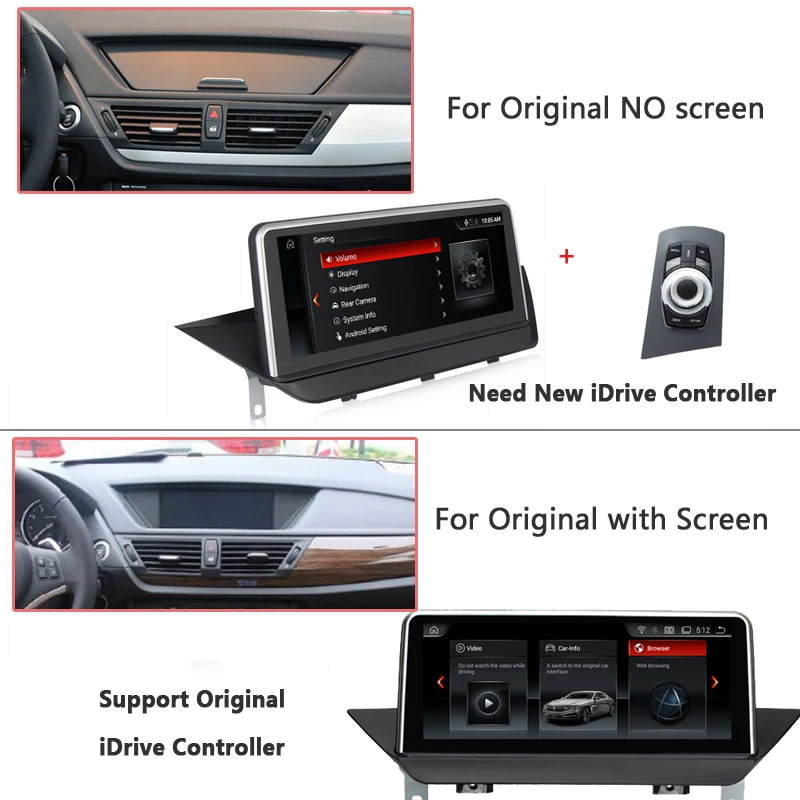 1. Для BMW X1 E84 (2009-2015) без оригинального экрана, мы предоставляем новый контроллер iDriver!2. Для BMW X1 E84 (2009-2015) с оригинальным экраном/оригинальная CIC система 4PIN подключение.Пожалуйста, выберите подходящий пакет с вашими интересными подарками.