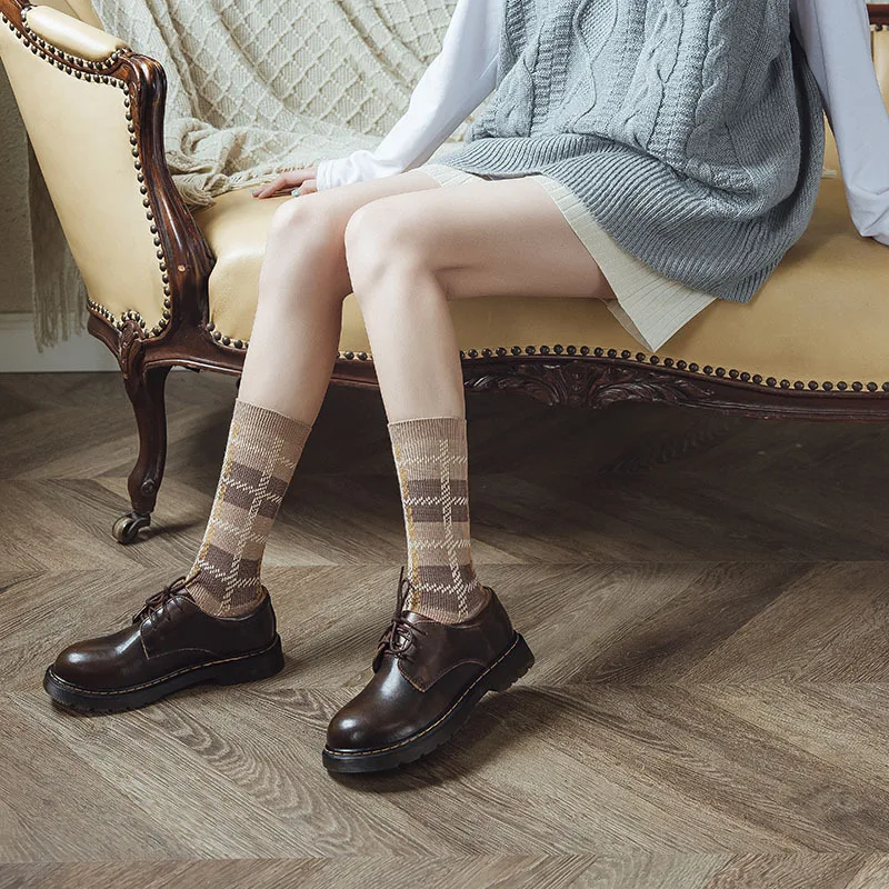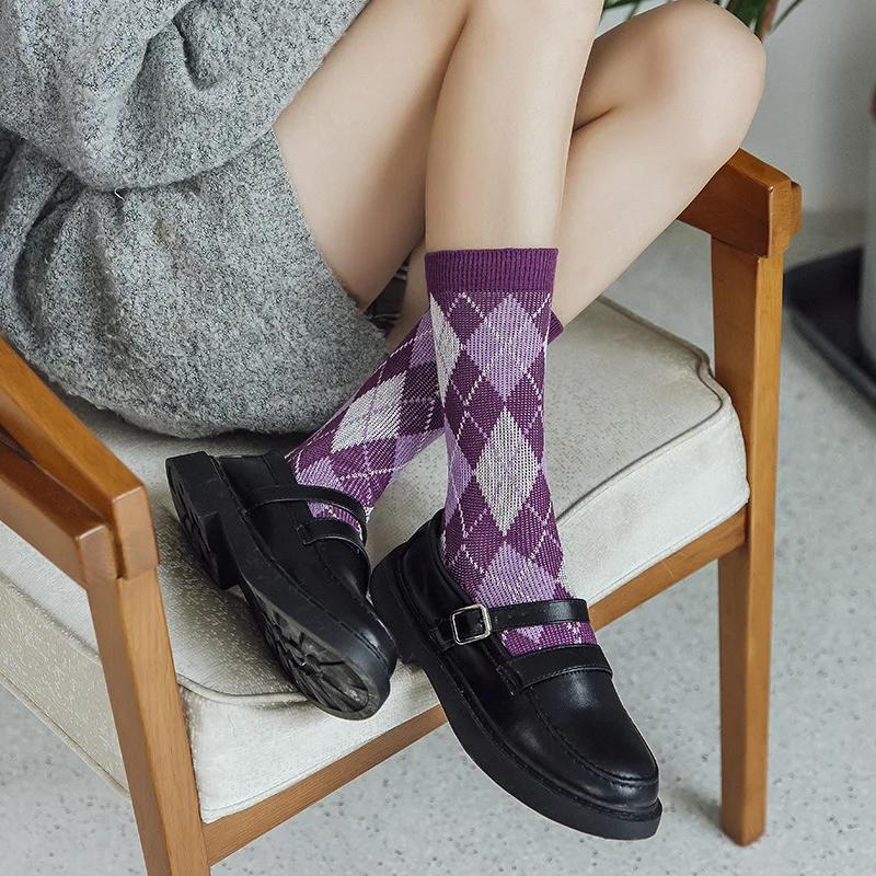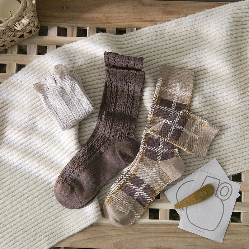 3 пар/компл. милые японские школа школьник Модный стильный принт хлопок свободного кроя в клетку, носки для женщин и мужчин, носки Harajuku дизайнера; Стиль ретро; Приятная фиолетовый коричневый носки