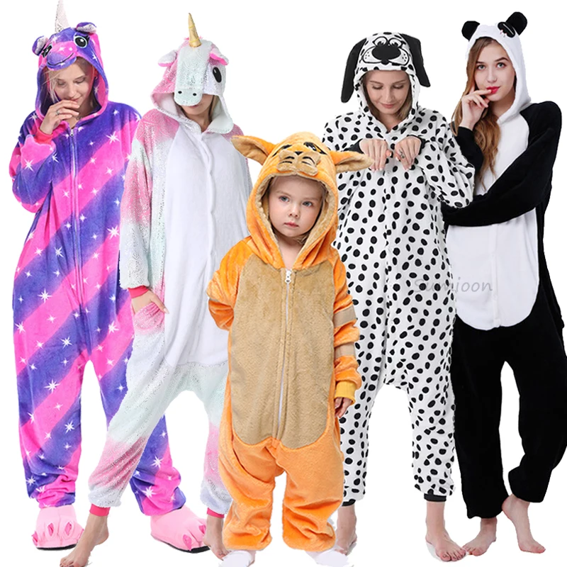 Комбинезон-кигуруми в виде единорога, зимние женские пижамы в виде панды для мальчиков и девочек, пижамы в виде животных, костюмы для взрослых и детей, Фланелевая пижама с мультяшным рисунком