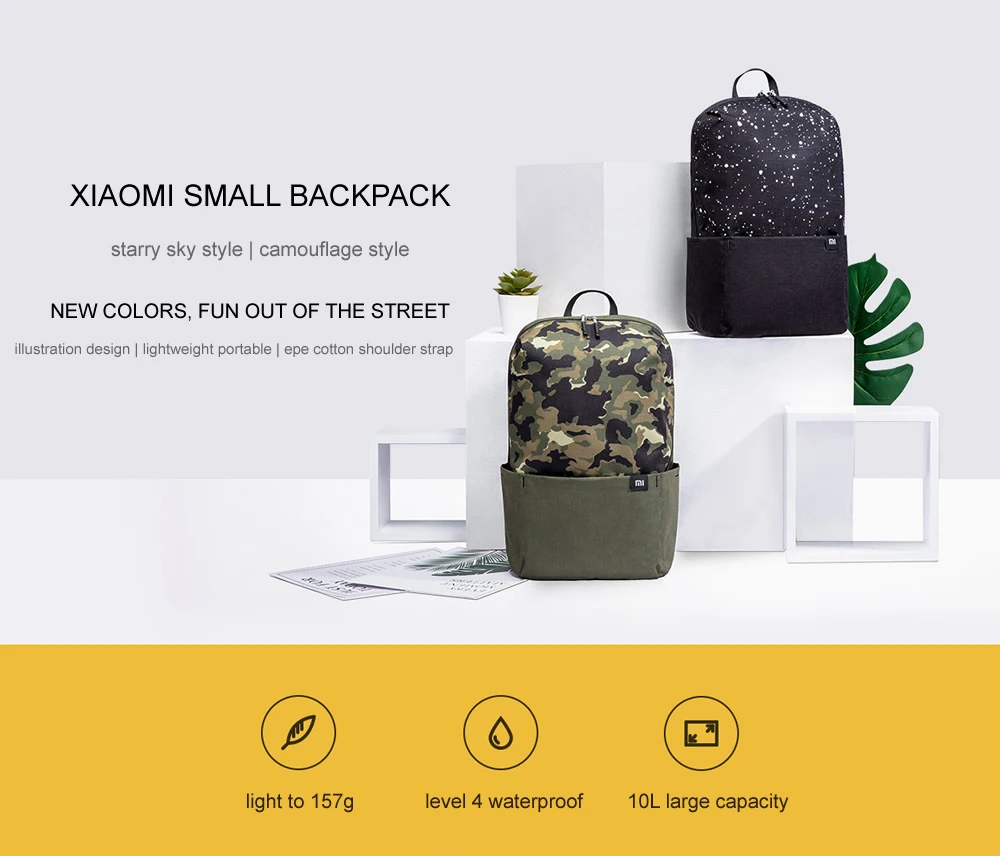 Оригинальный маленький рюкзак Xiaomi 10 л Mi Urban с изображением звездного неба и камуфляга, удобная спортивная водонепроницаемая повседневная школьная сумка для мужчин и женщин