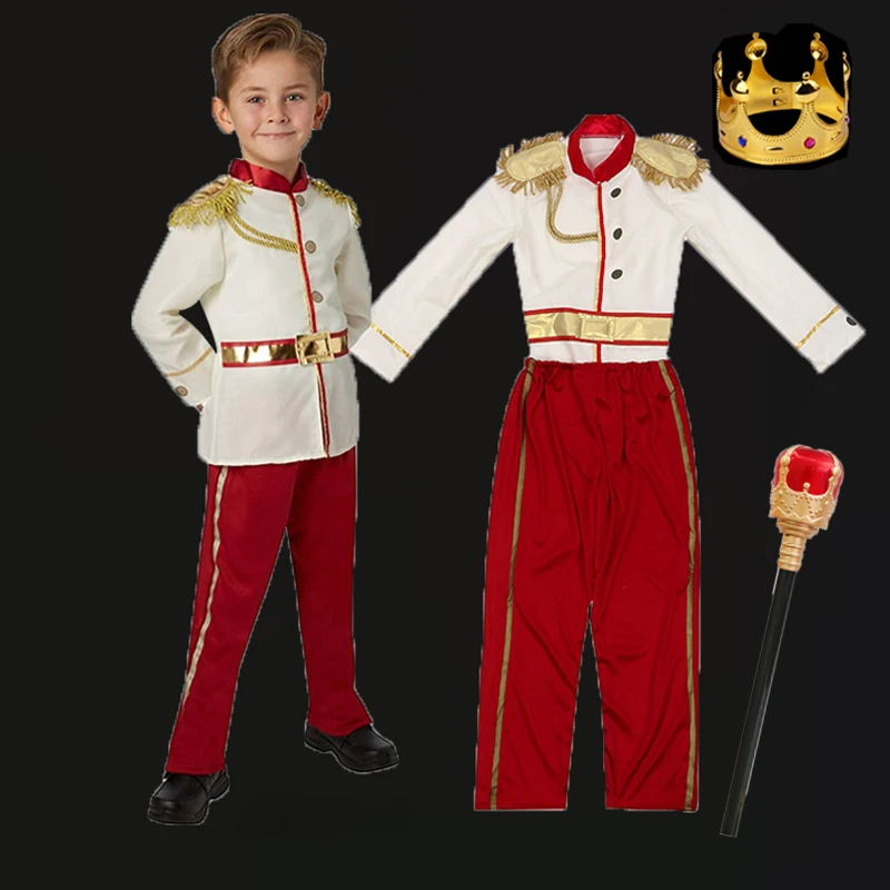 Модный с принтом Маленький принц, Очаровательная маскарадный костюм на Хеллоуин; Платье для детей Детская одежда; Одежда для мальчиков King красивый вечеринка для мальчика день рождение, комплект одежды