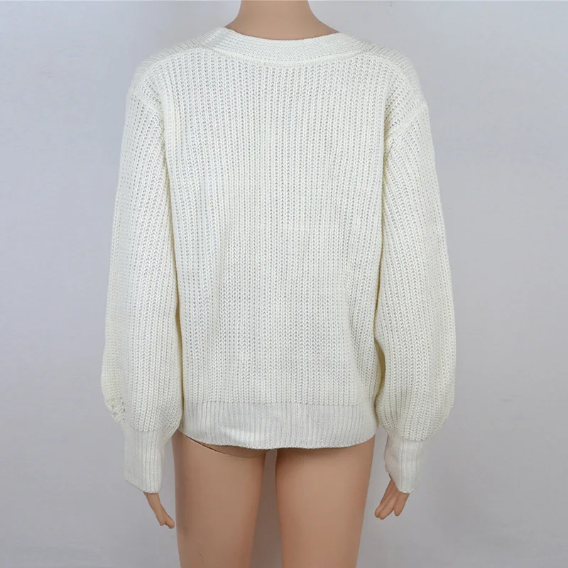 Женский однотонный Повседневный свитер, трикотажный кардиган оверсайз с V-образным вырезом, осеннее пальто на пуговицах, 2020