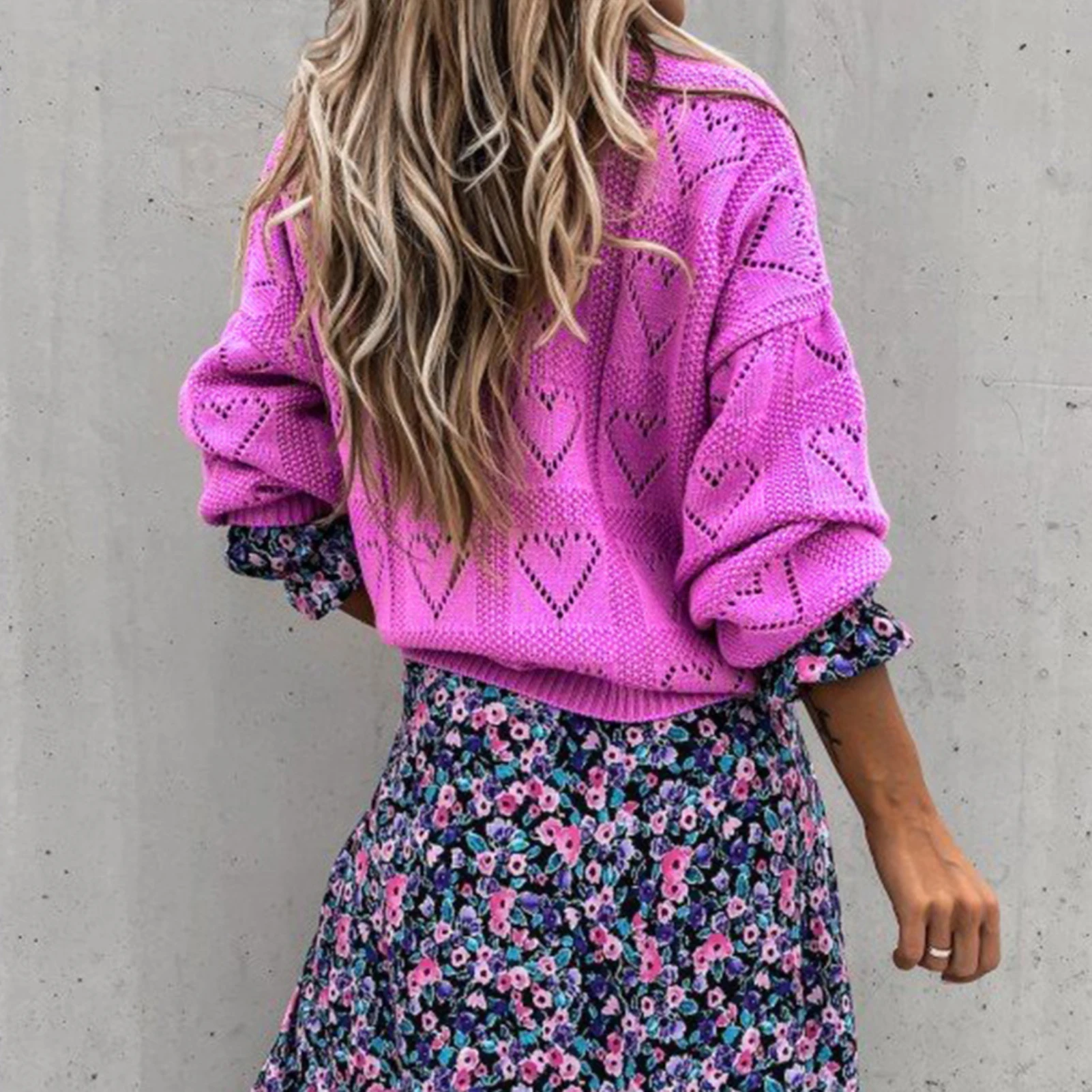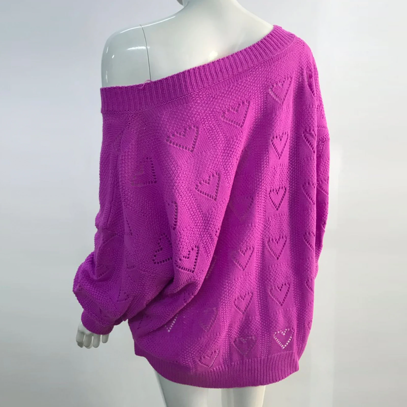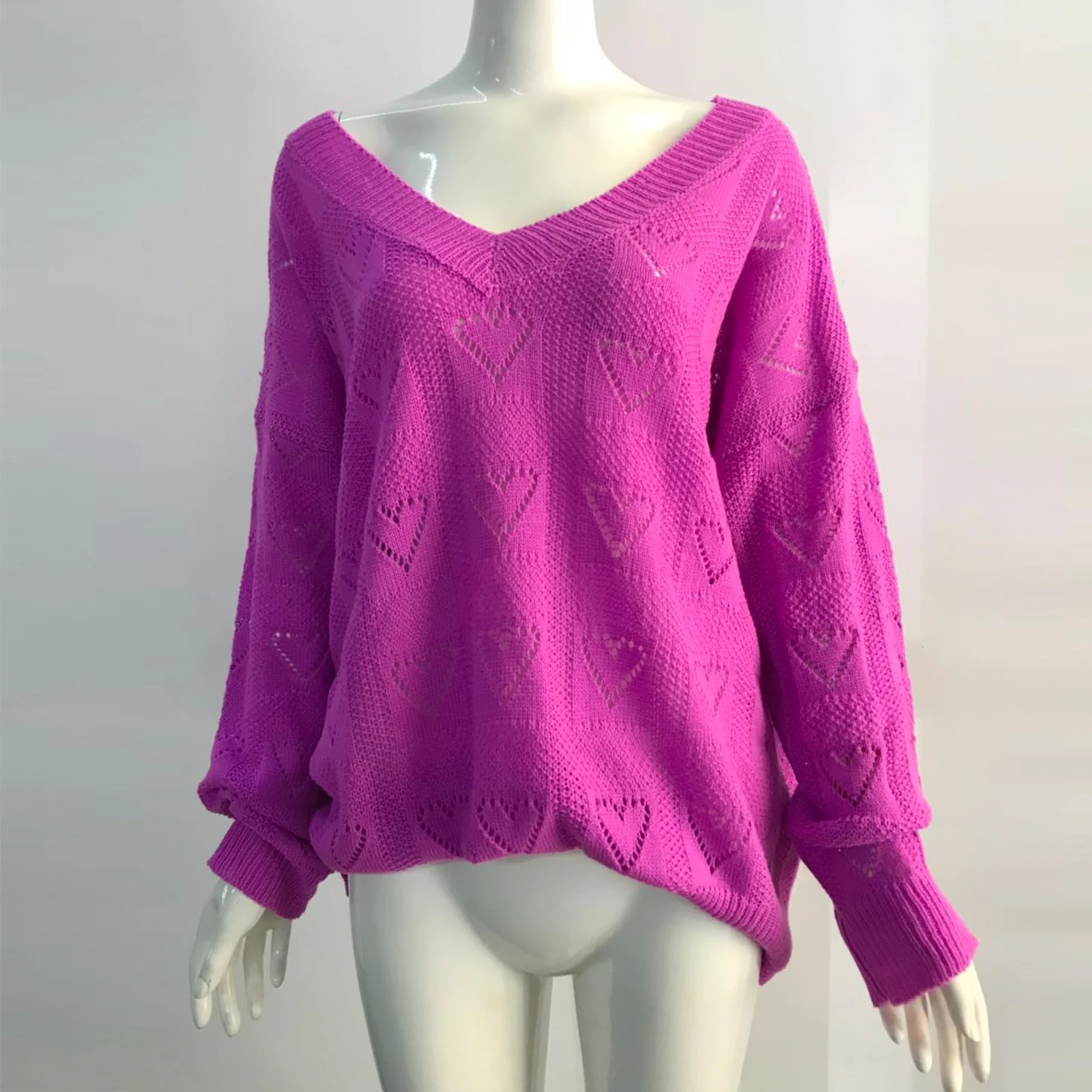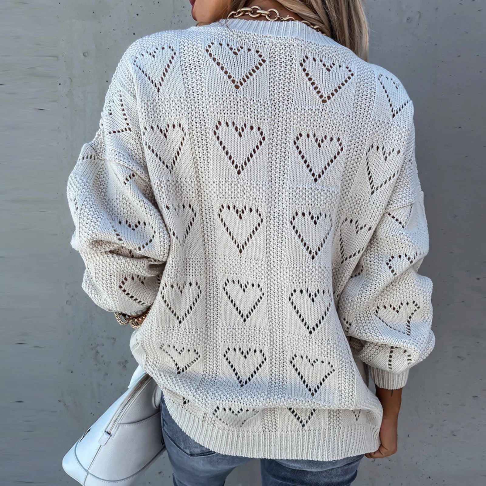 Женский вязаный свитер с сердечками на осень и зиму, свободный трикотажный джемпер