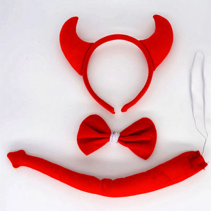 Красный черный дьявол, демон, рог, повязка на голову для вечерние, набор завязок, подарок на день рождения, животные, косплей, резинки для волос, плюшевые, Хэллоуин, день рождения, очим