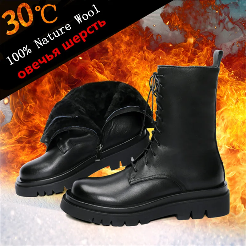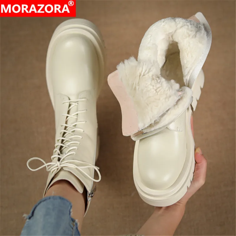 Женские ботинки из натуральной кожи MORAZORA, черные теплые ботинки из натуральной шерсти, со шнуровкой, большой размер 34-42, зима 2021