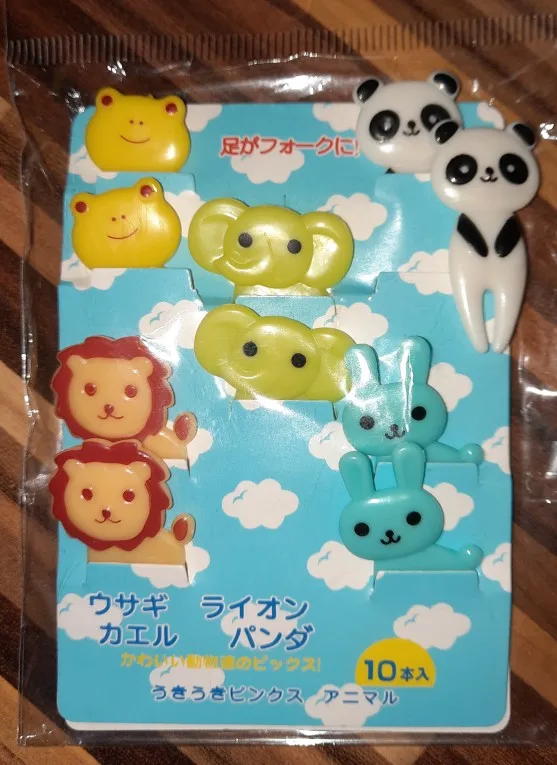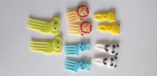 Детская мини-вилка для фруктов с персонажем из мультфильма для животных, закуска пирог десерт, фруктовая зубочистка, украшение для обеда, вечеринки, случайный цвет