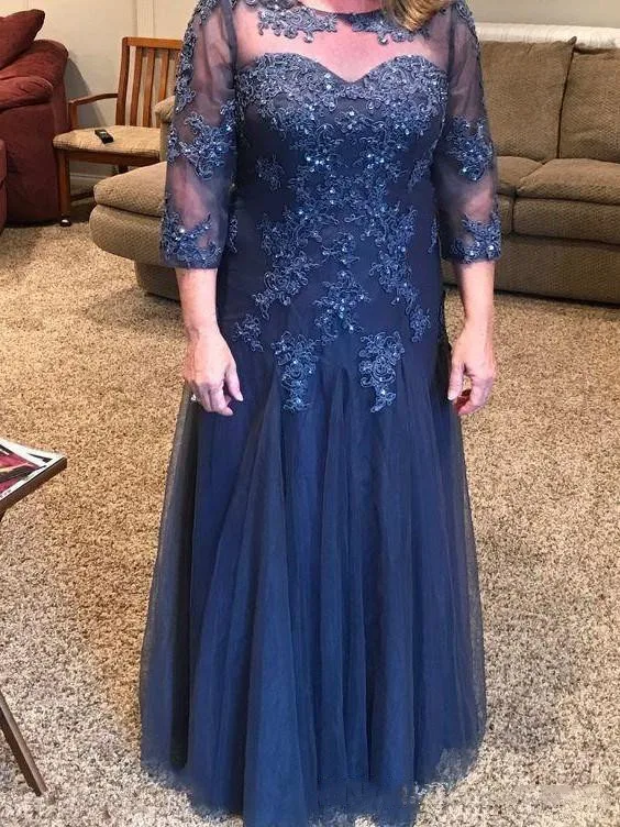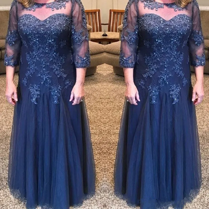 Темно-синие платья для матери невесты, женское фатиновое вечернее платье до пола, праздничные платья больших размеров