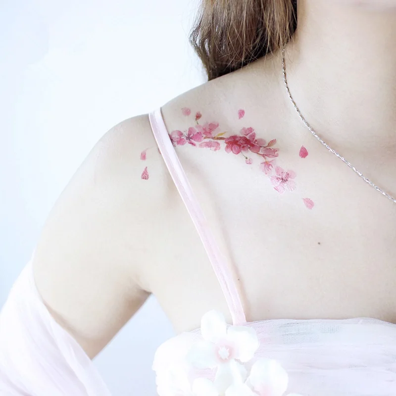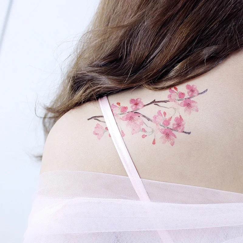 24 вида Цветочные татуировки, временные наклейки на тело, градиентные цвета, розовые цветы сакуры, одноразовые татуировки Временные