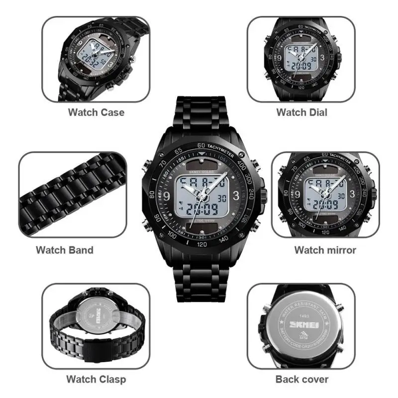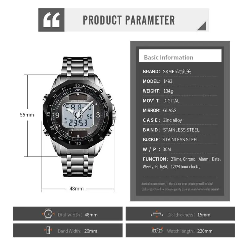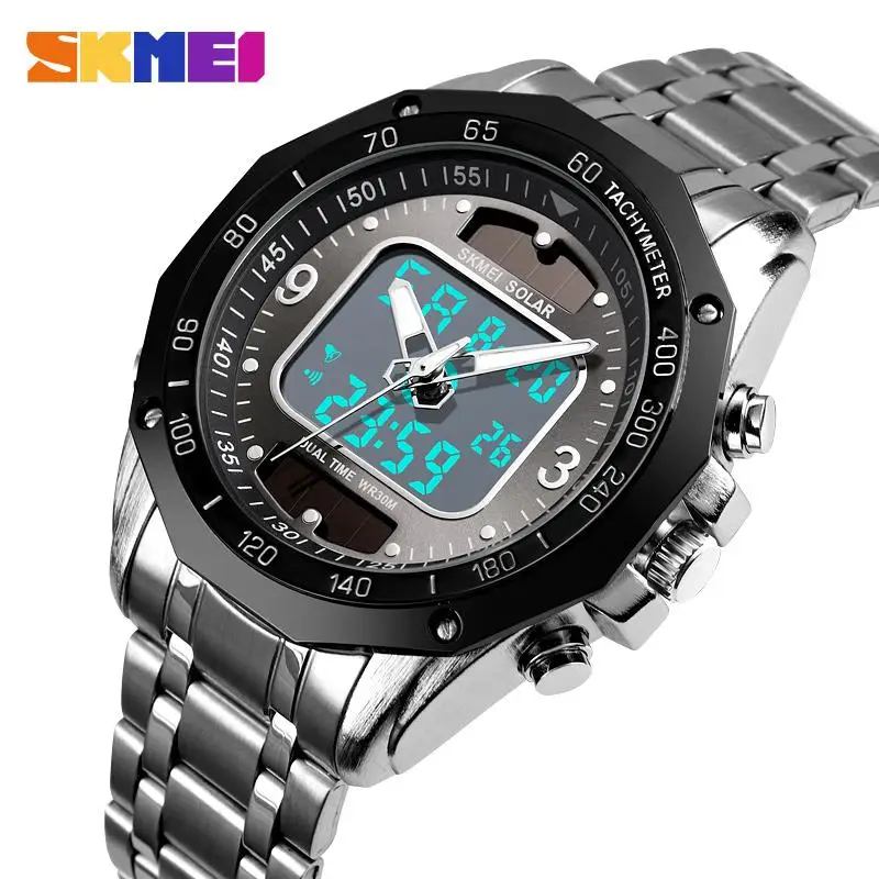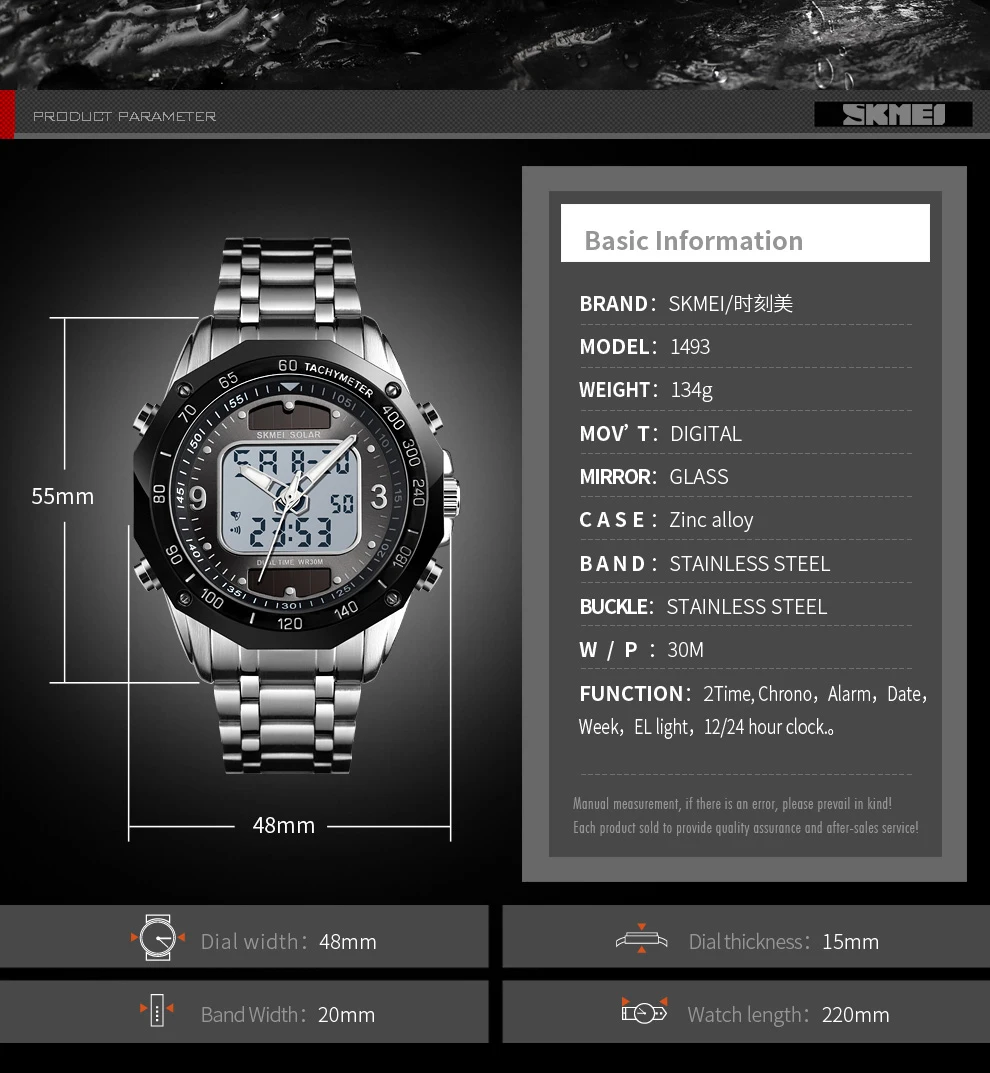 Часы наручные SKMEI мужские с двойным дисплеем, модные роскошные брендовые водонепроницаемые деловые, с ремешком из нержавеющей стали, 1493